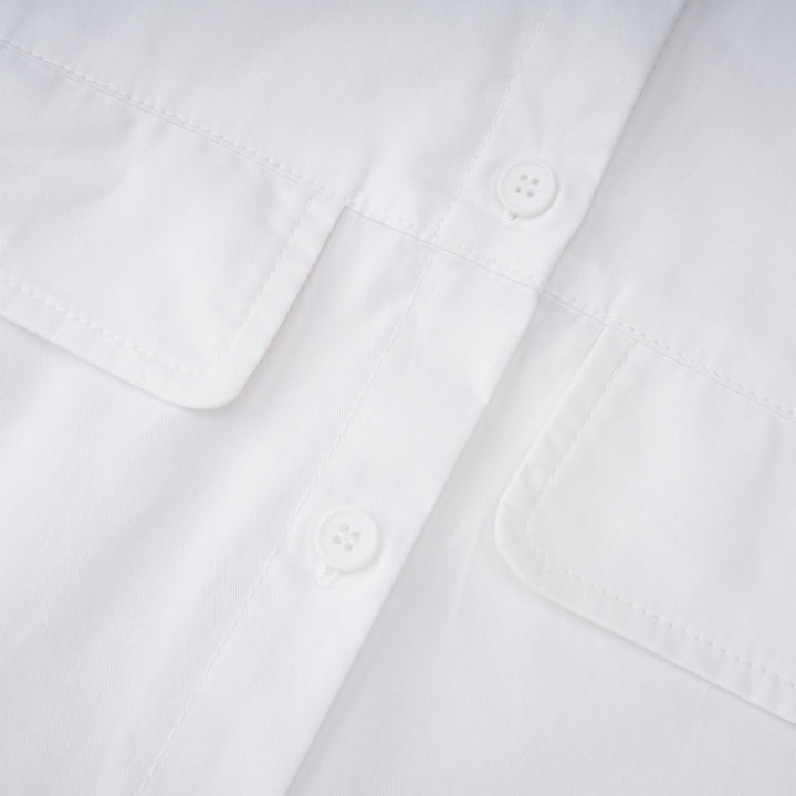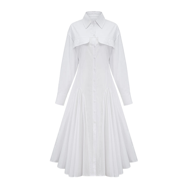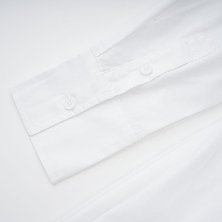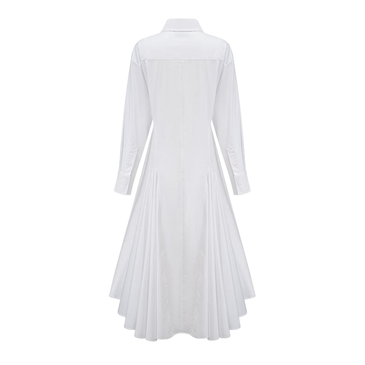 Dulcie white front-slit shirred shirt dress
