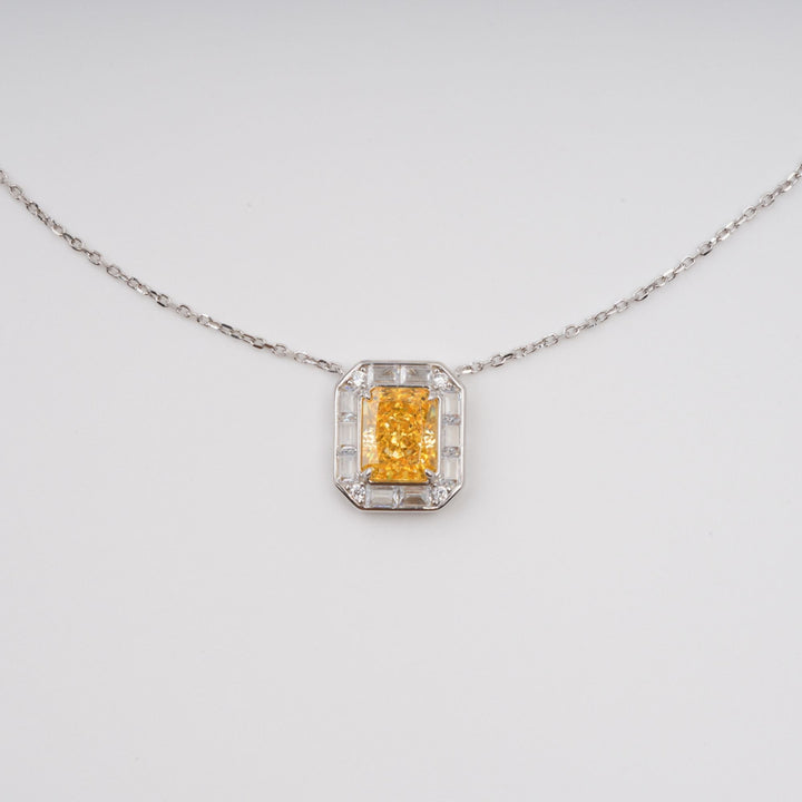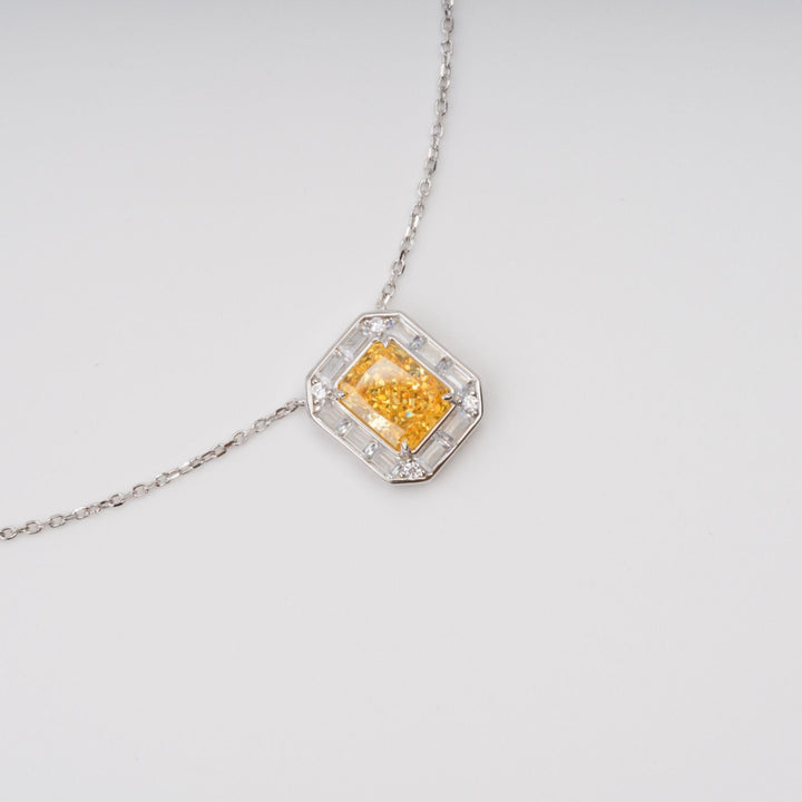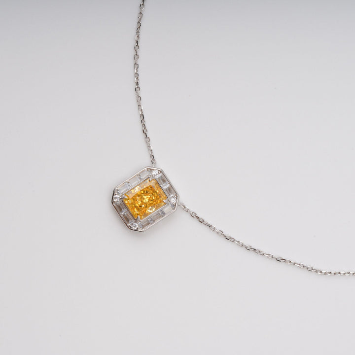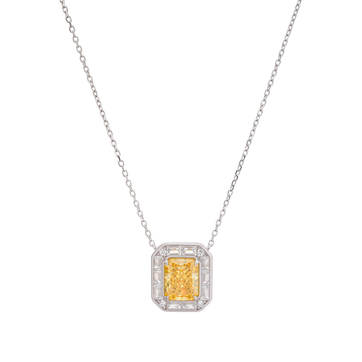 Eini Yellow Square Gemstone Pendant Sterling Silver Necklace