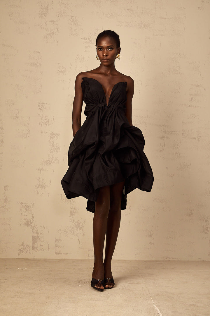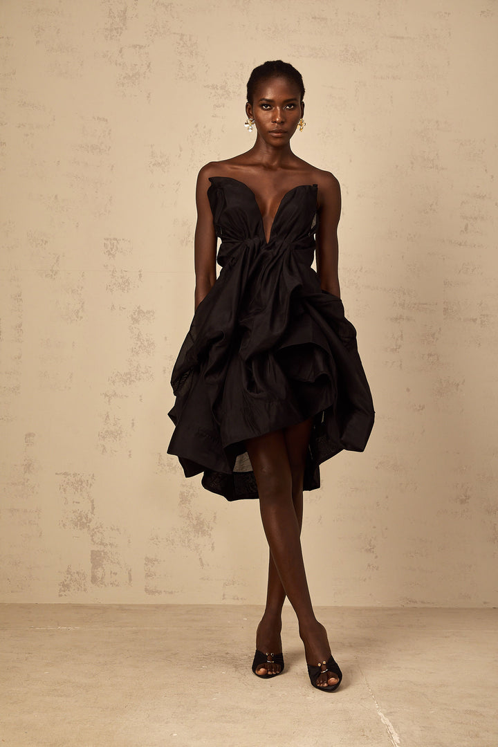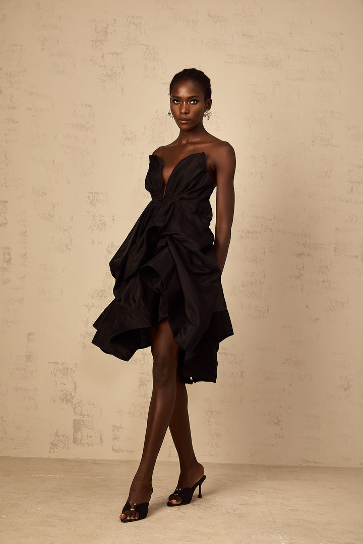 Elida Asymmetrical Pleated Cocktail Mini Dress
