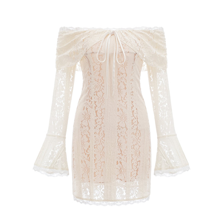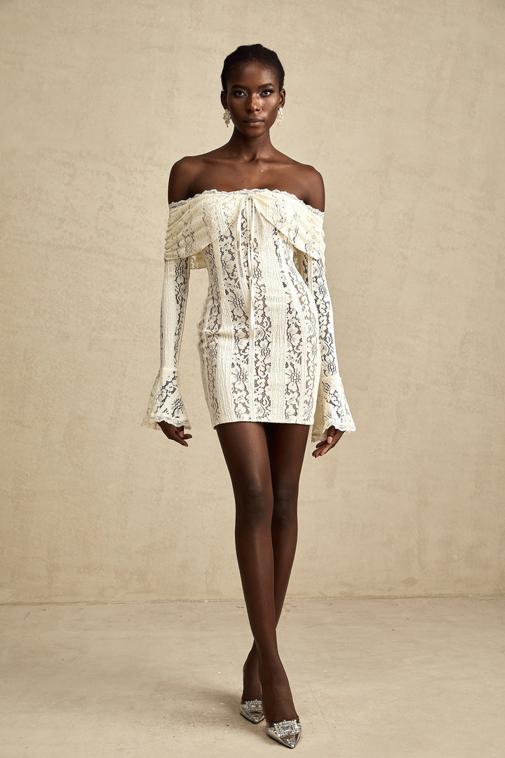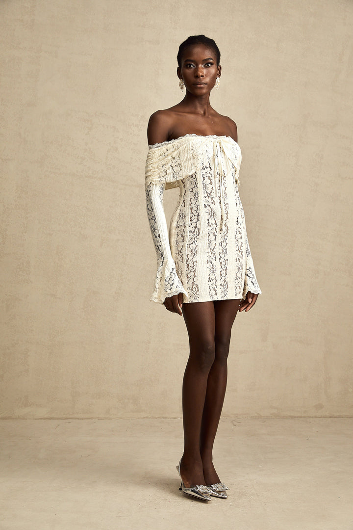 Émeline floral lace flared-cuff mini dress in Neutrals (US Only)