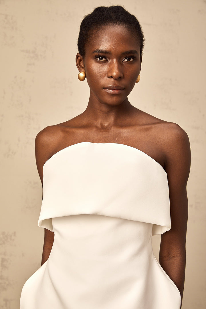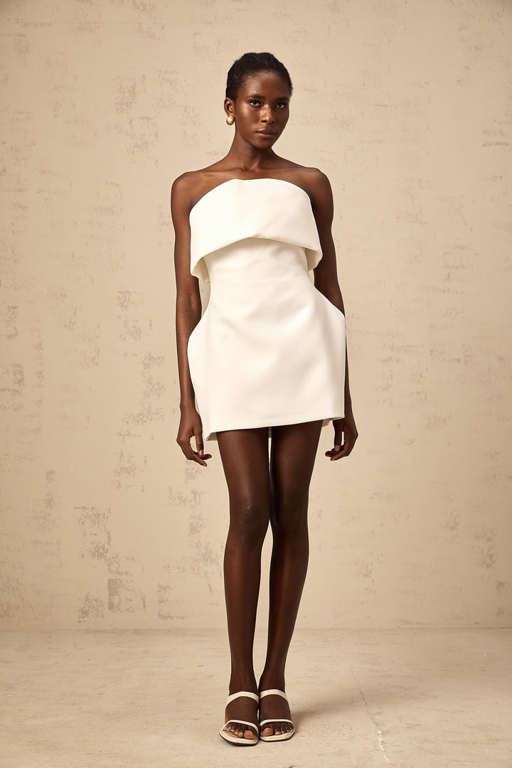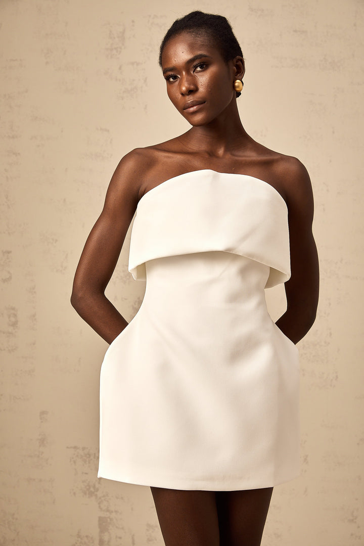 Énora white off-shoulder puff mini dress