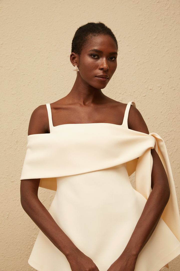 Garance Cream White Self Tie Flared Mini Dress