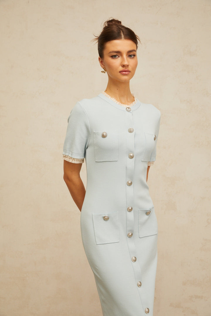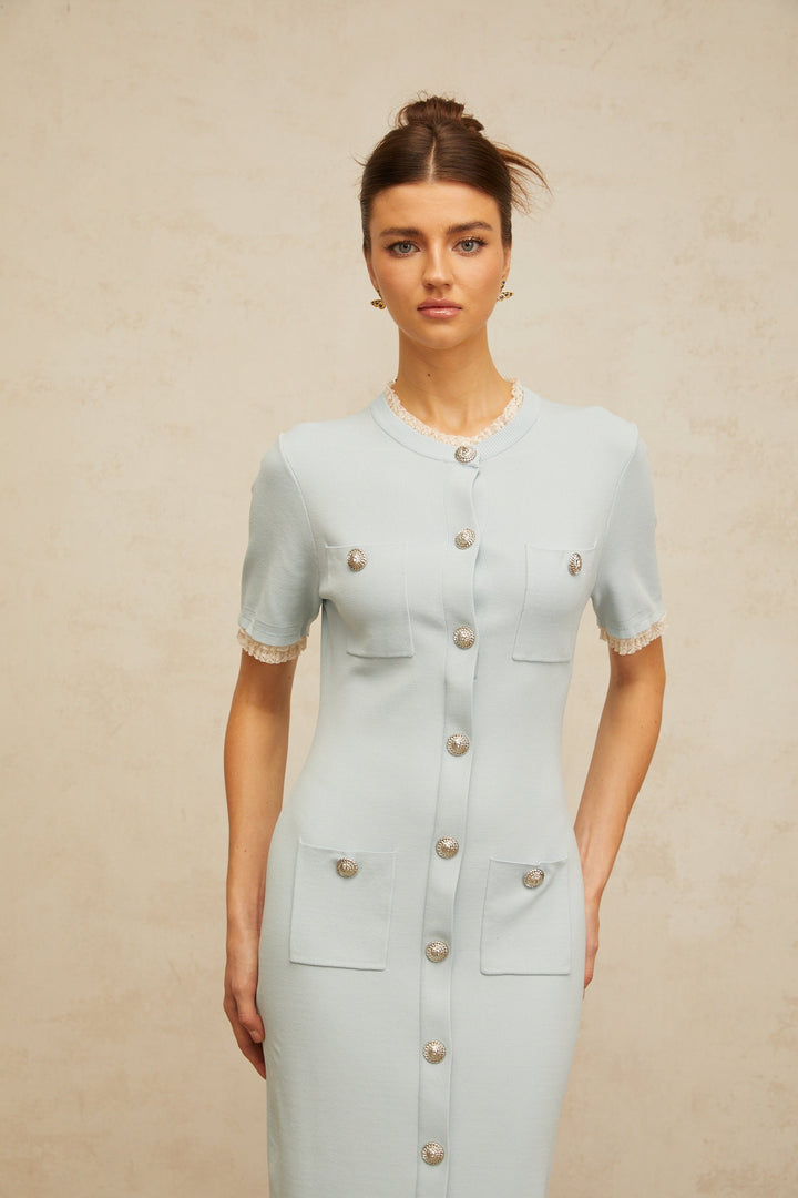Mélisande light-blue pencil-silhouette knit midi dress