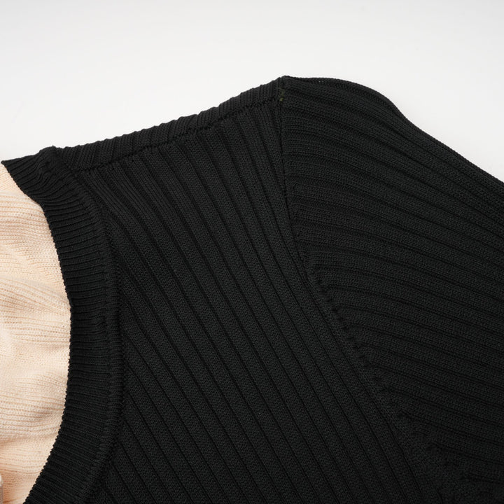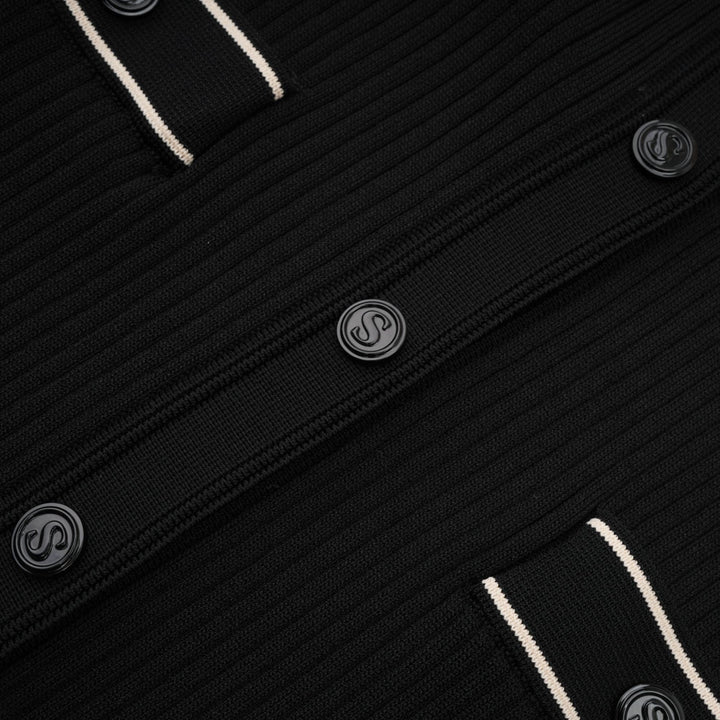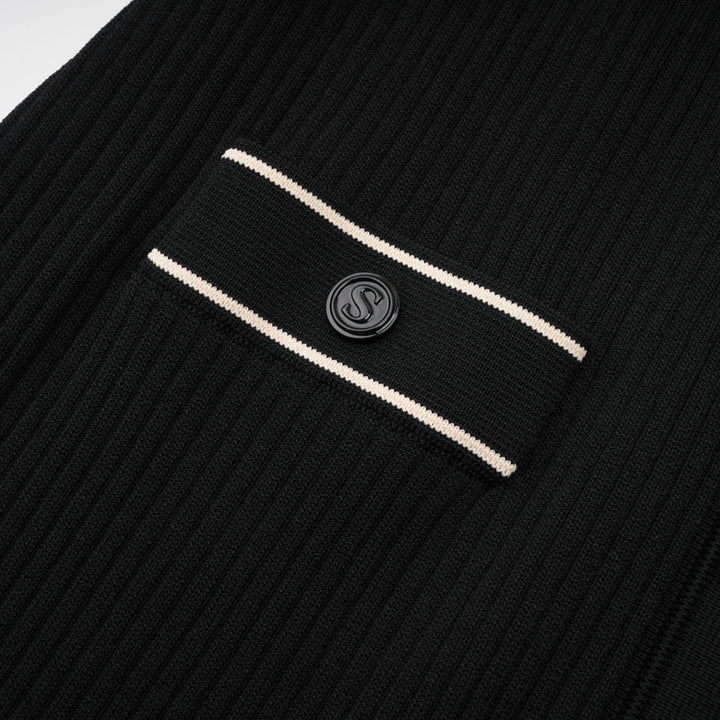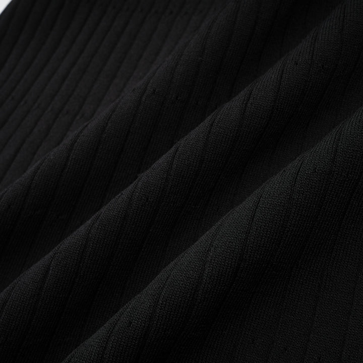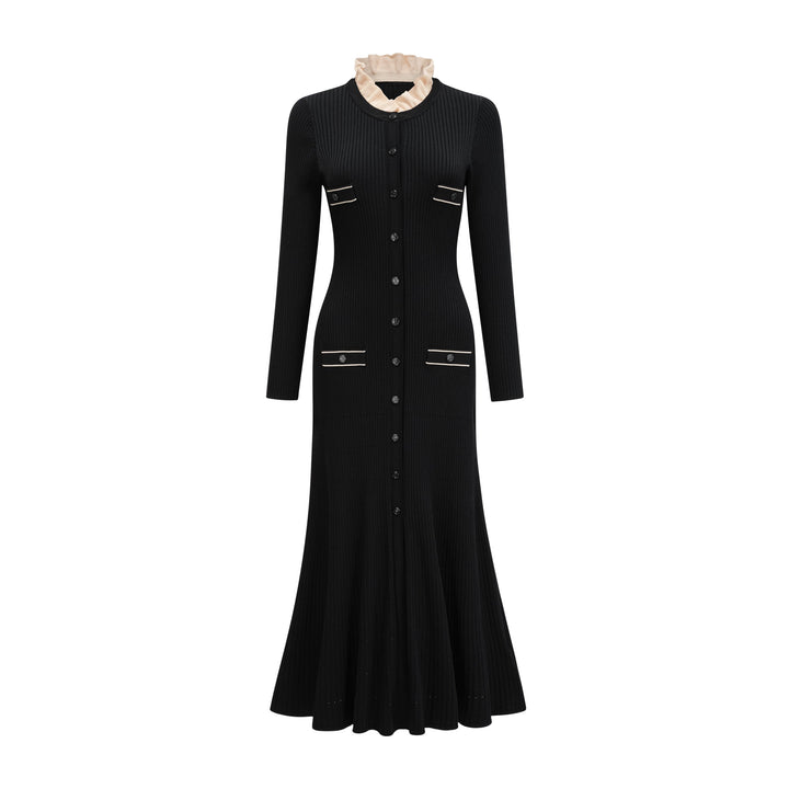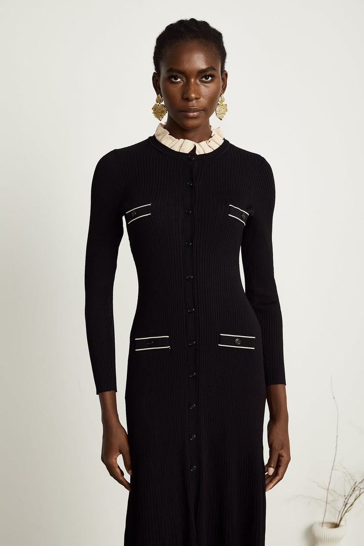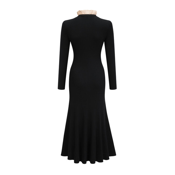 Nadège black ruffled-neck knitted midi dress