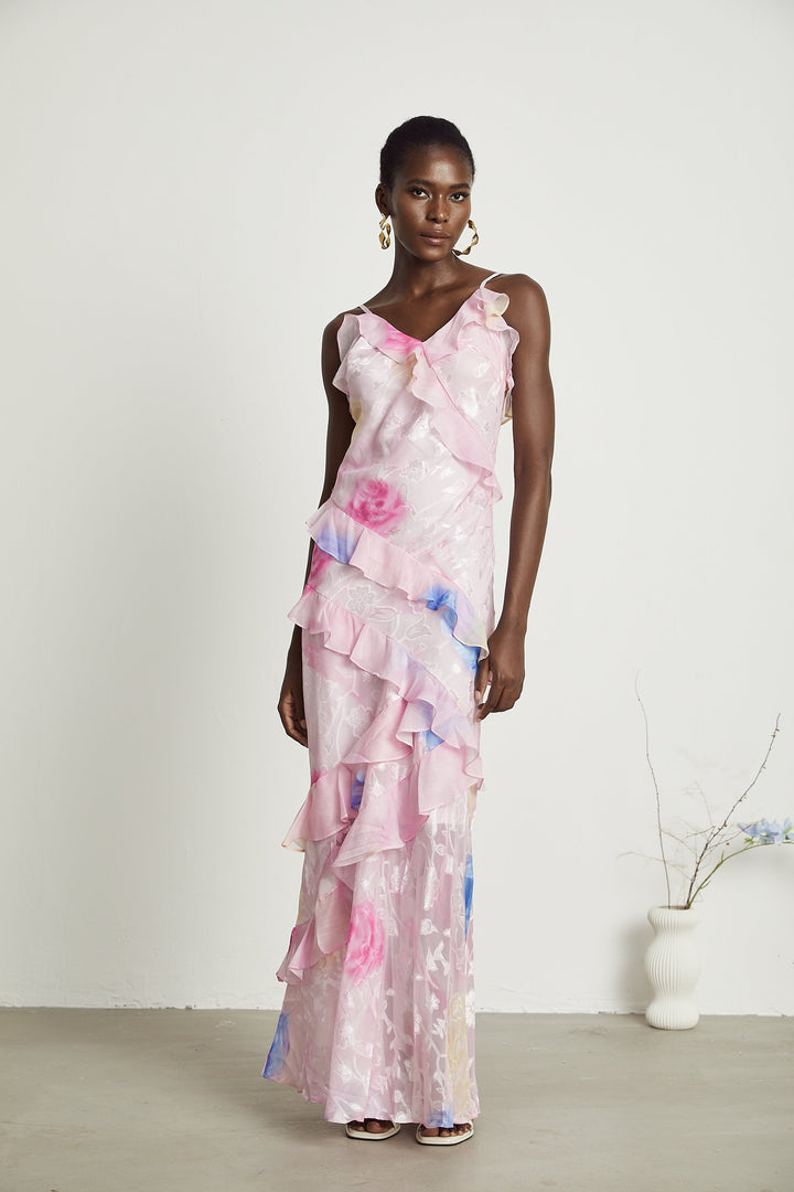 Lorenza floral jacquard ruffled maxi dress