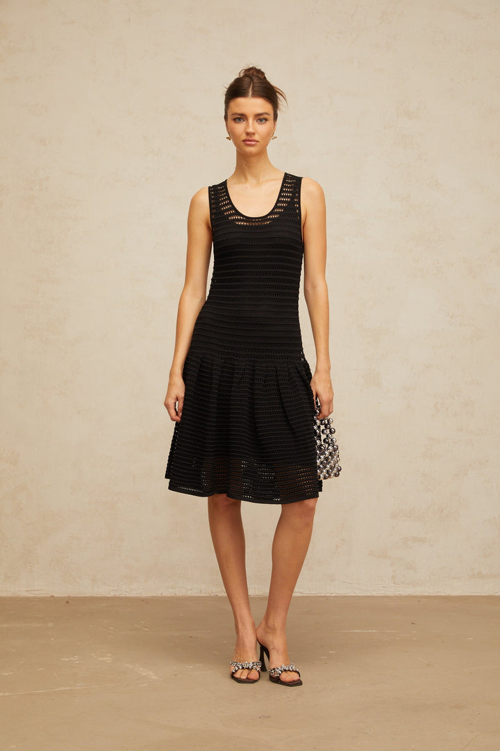 Maelle black flounced pointelle-knit mini dress