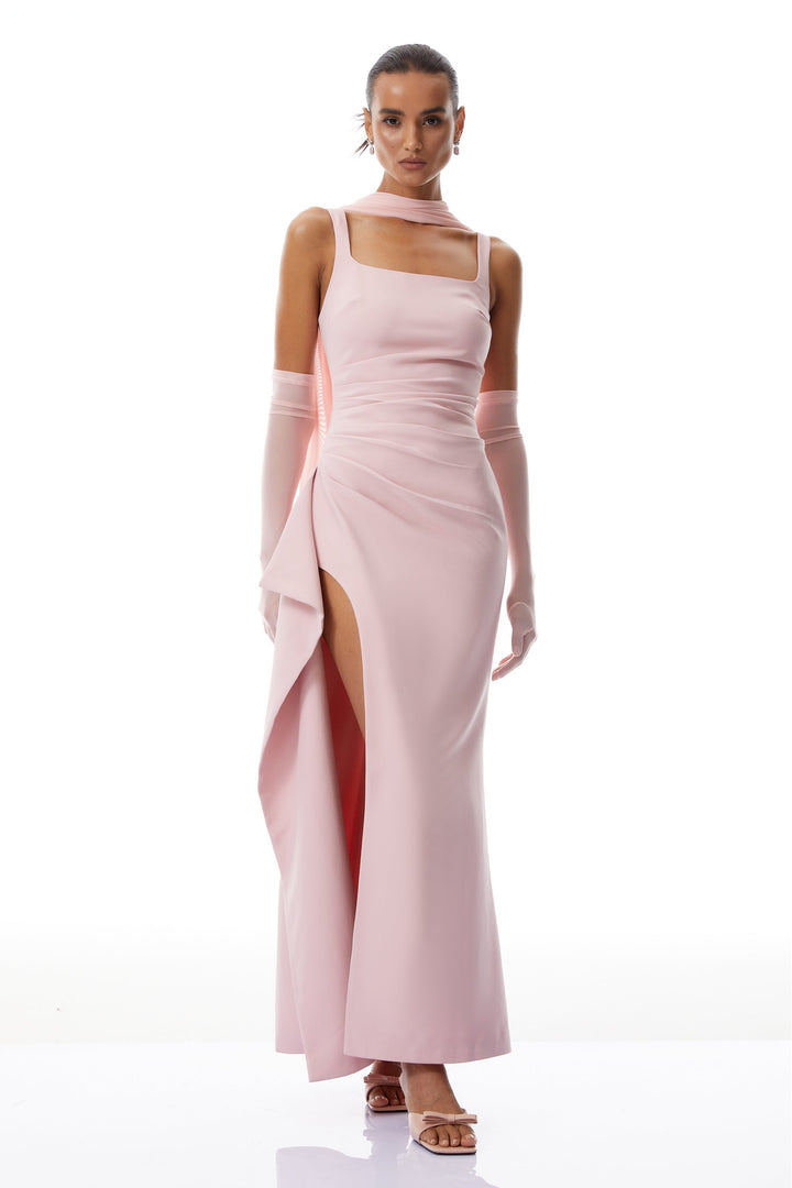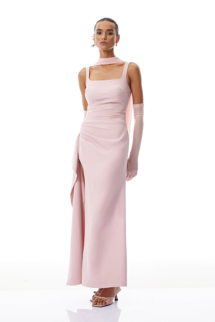 Ophélie Pink Scarf Detail Gathered Maxi Dress
