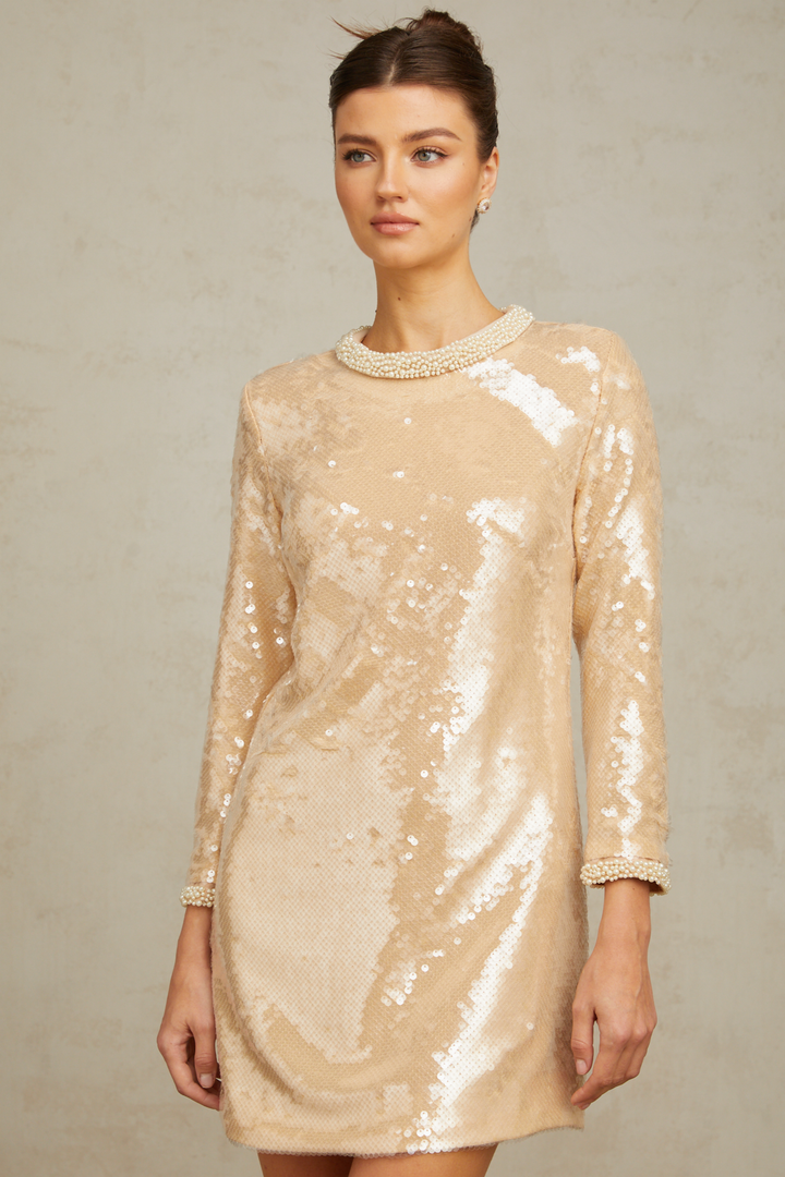 IMPORTANT NOTICE: By ordering Ornella dress, you are abiding to the fact that all sequins are handmade. The occasional shedding and breakage of a very small number of sequins is a normal phenomenon. Even high-end or luxury brands encounter this.