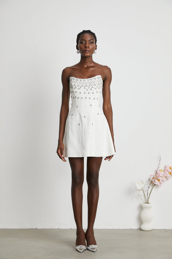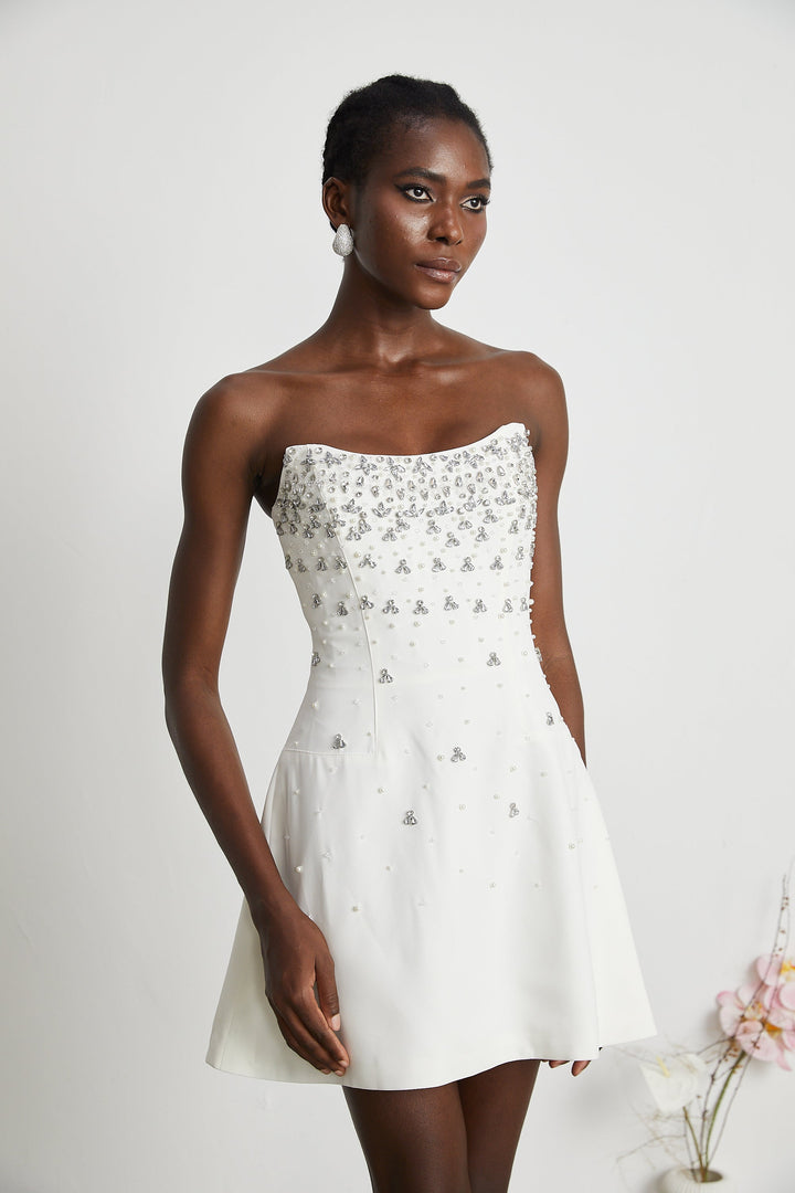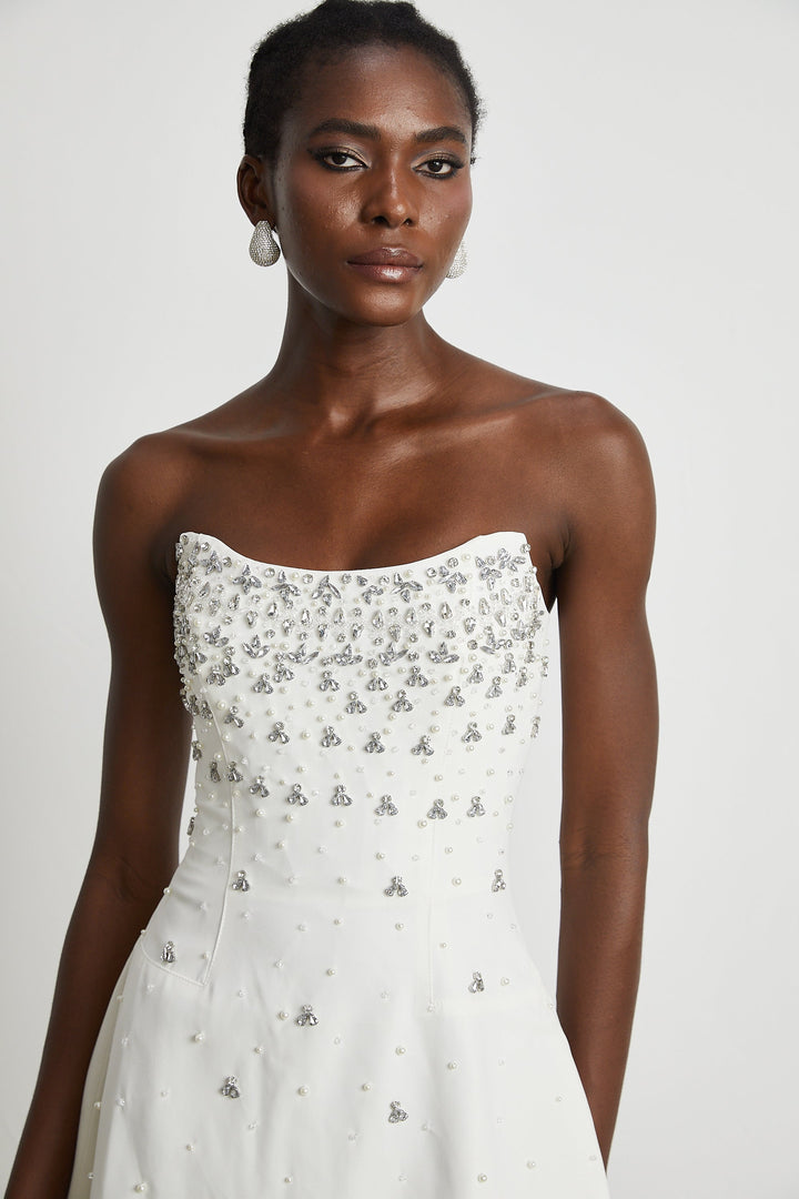• IMPORTANT NOTICE: By ordering Melisande dress, you are abiding to the fact that all pearls & crystals are handmade. The occasional shedding and breakage of a very small number of pearls & crystals is a normal phenomenon. Even high-end or luxury brands encounter this.