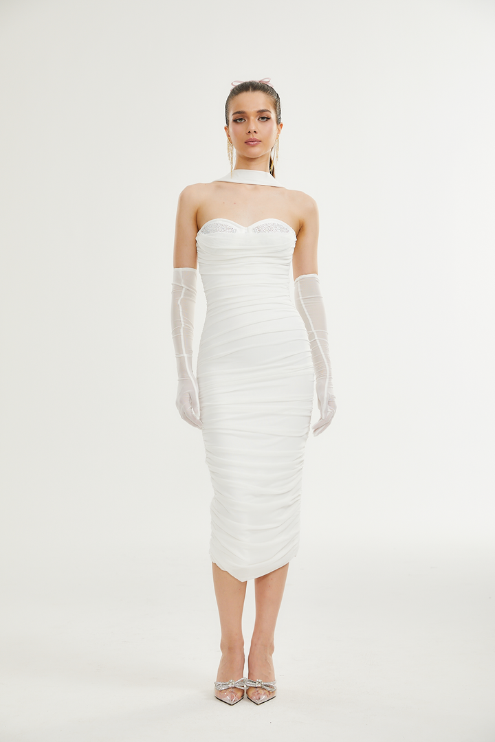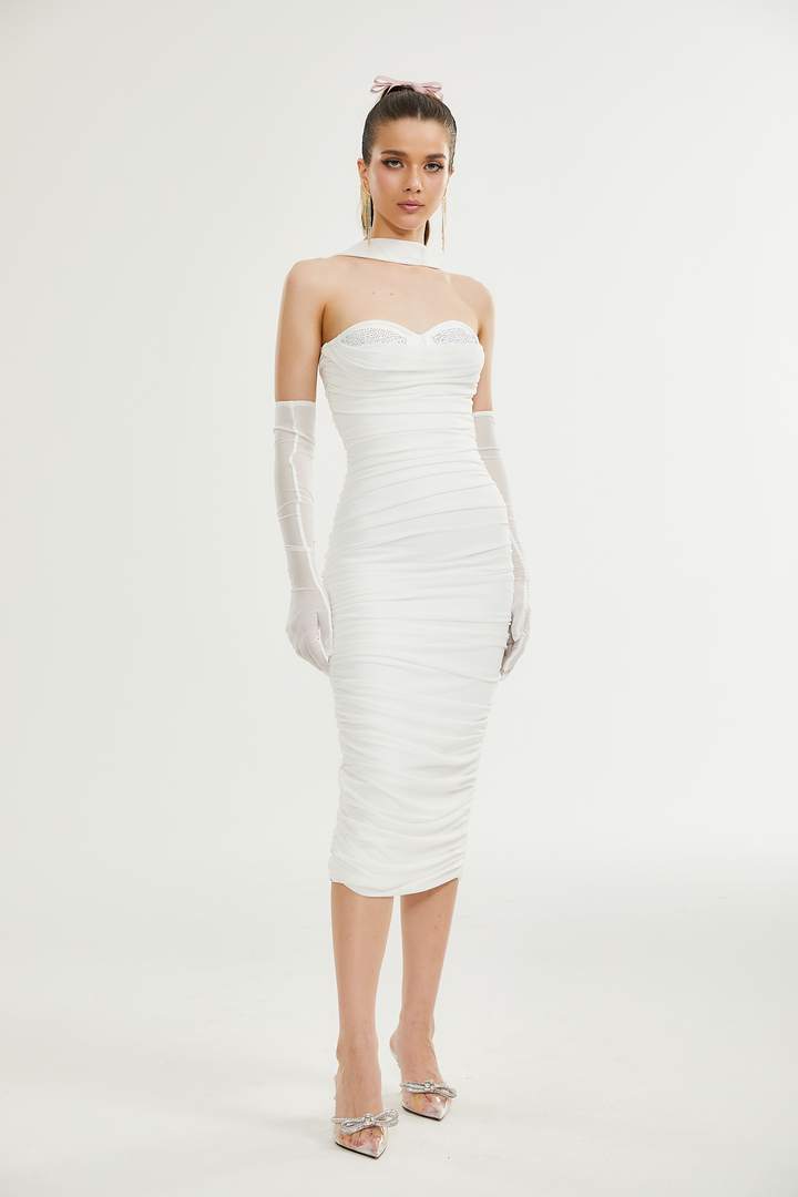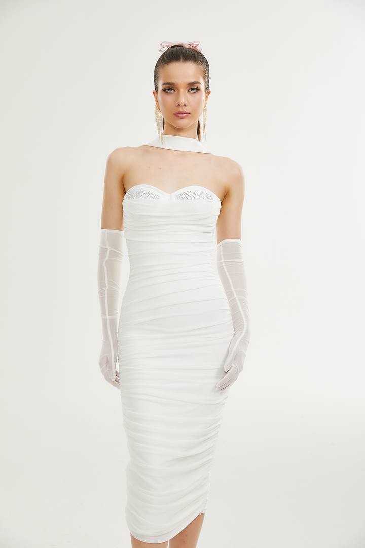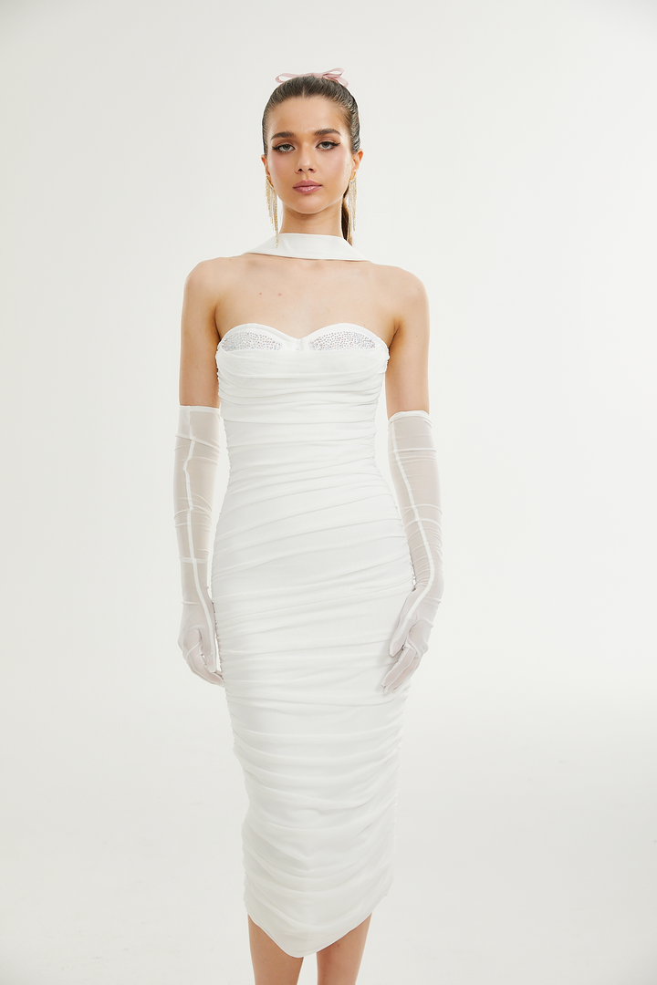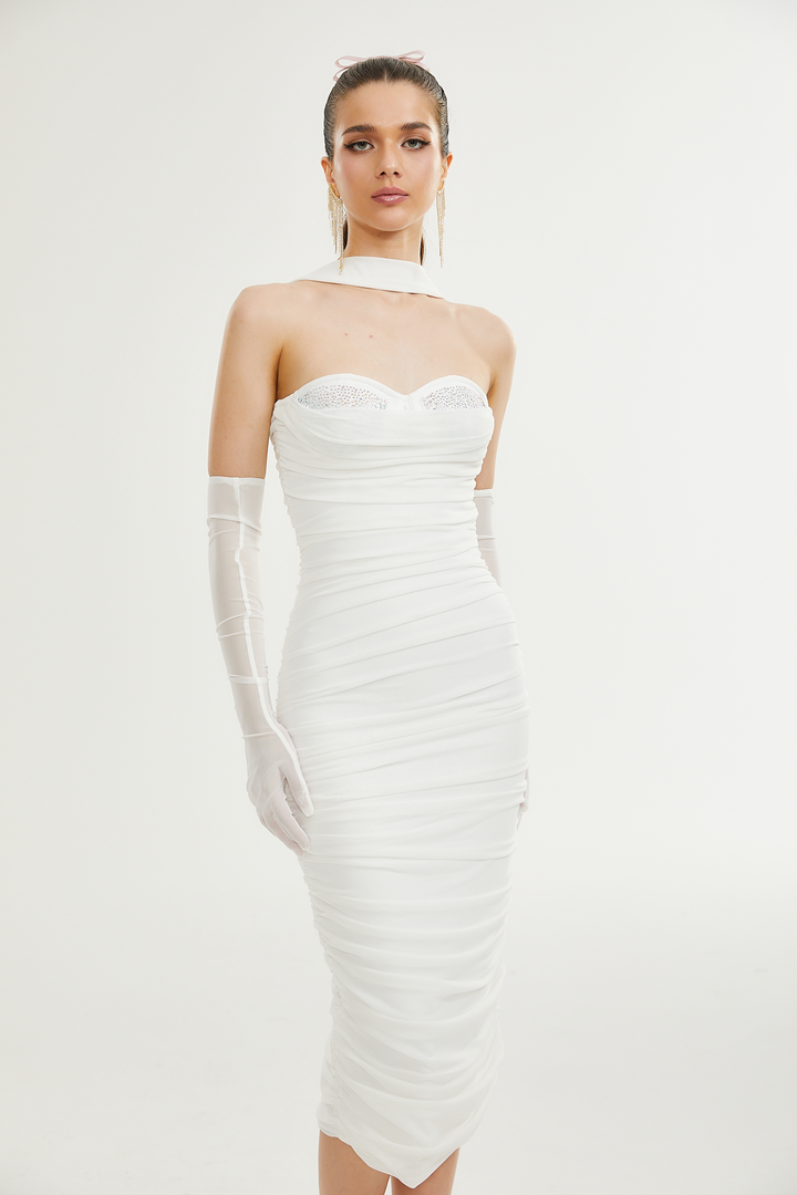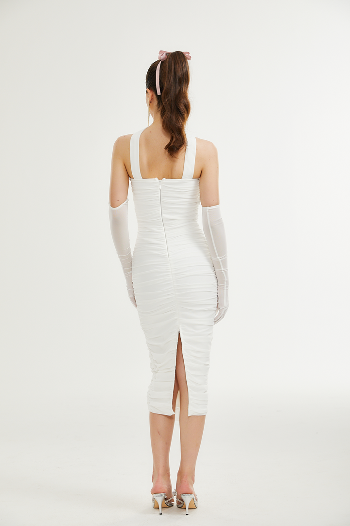 Pádraigín white mesh gathered midi dress