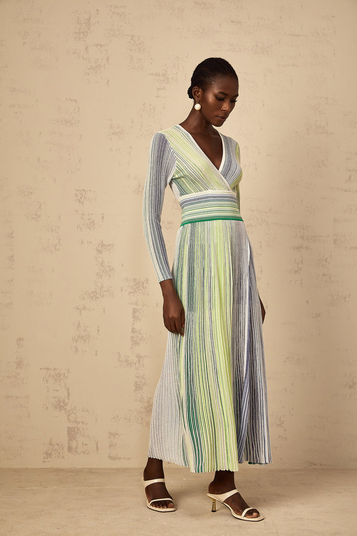 Amaryllis Green Long Sleeve Sequin Striped Knit Maxi Dress