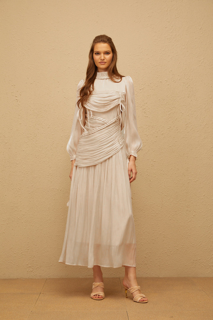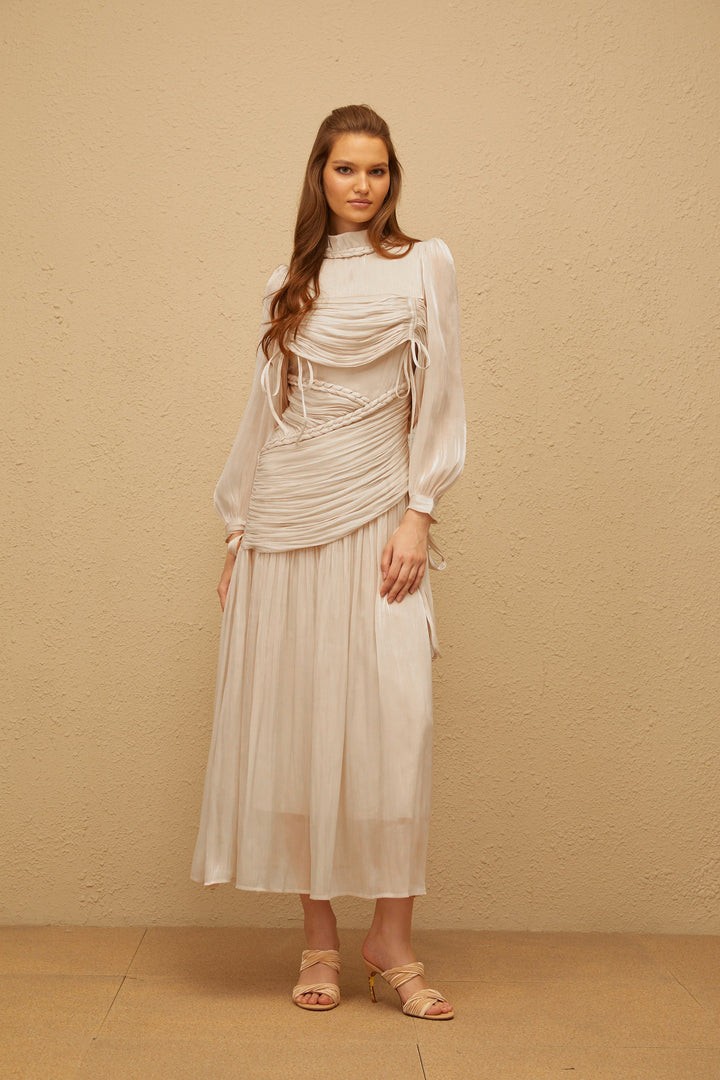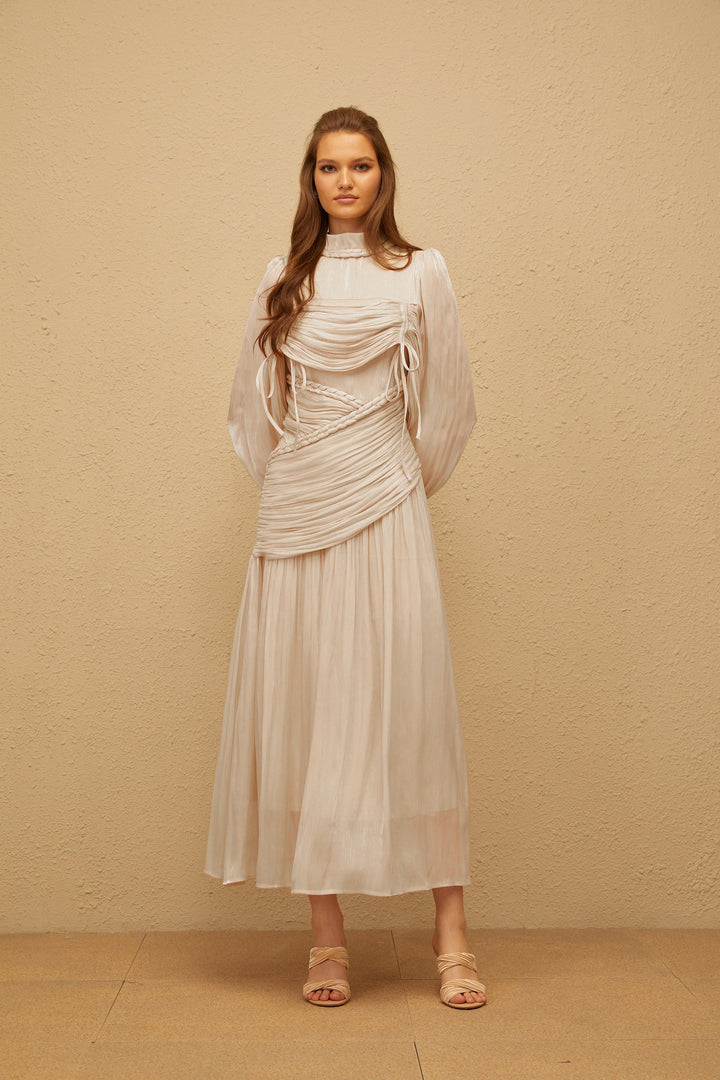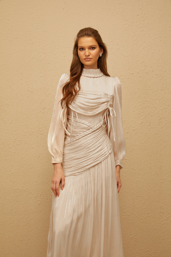 Amour Grey Ruched Glossy Maxi Dress