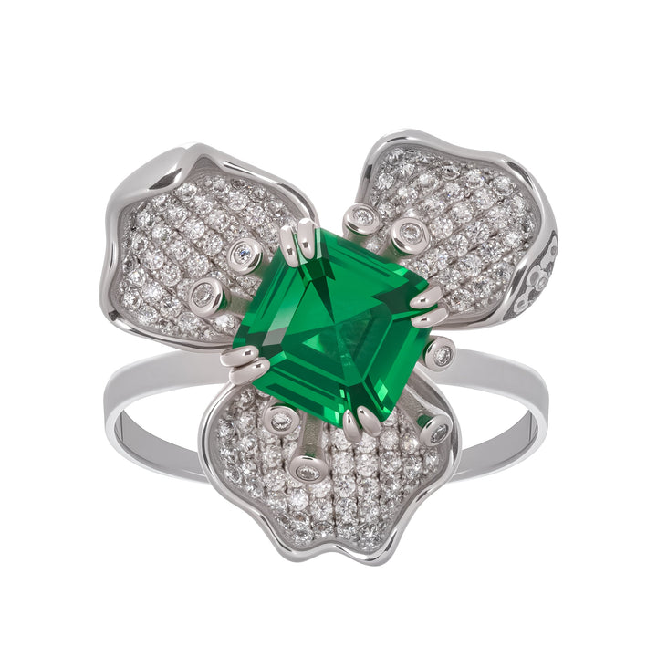 Carine Green Flower Shaped Zircon Gemstone Sterling Silver Ring