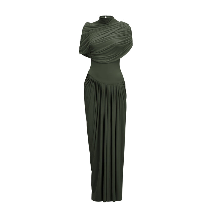 Catherine asymmetrical pleated maxi dress in Green