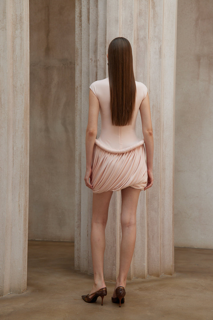 Fleur Pink Ruched Bubble Hem Mini Dress