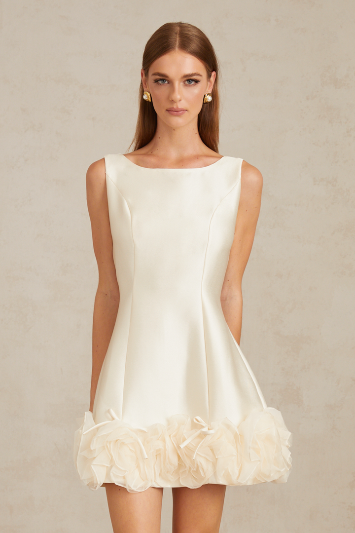 Caméo Cream White Tulle Panel Floral Mini Dress