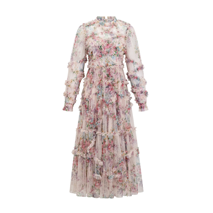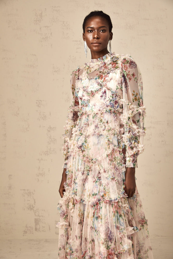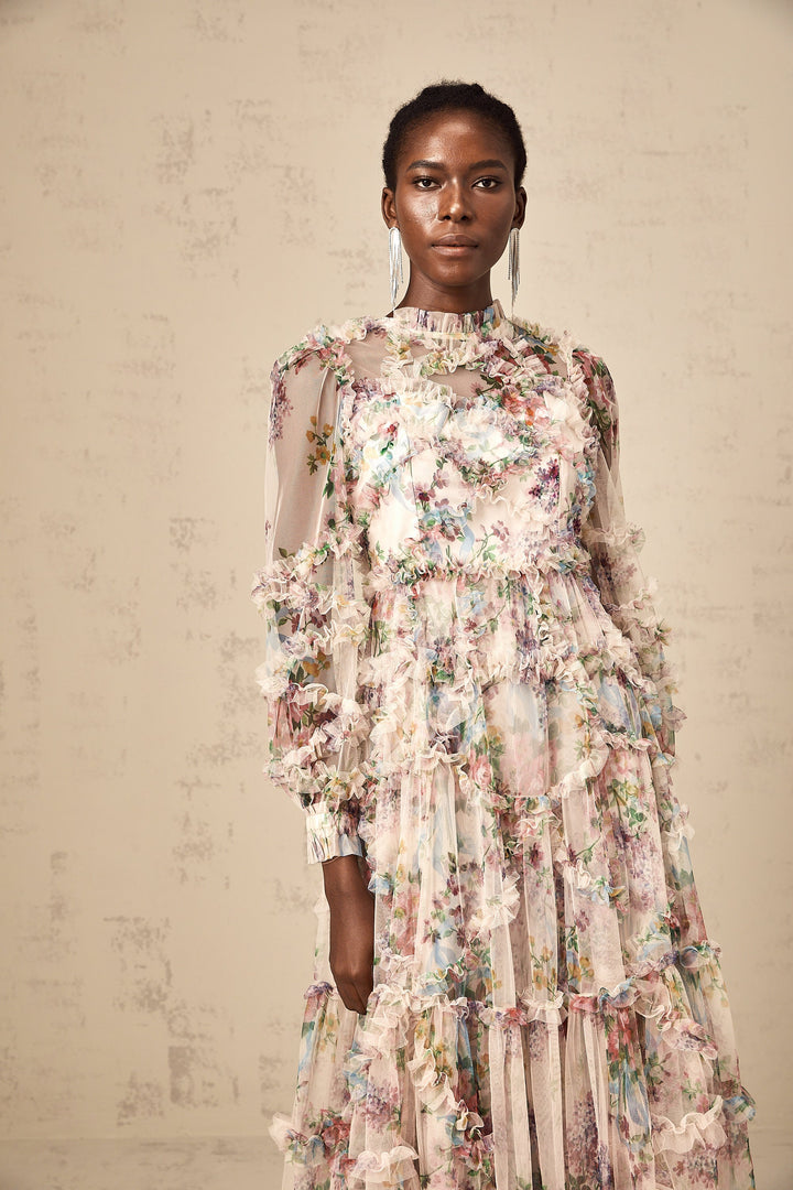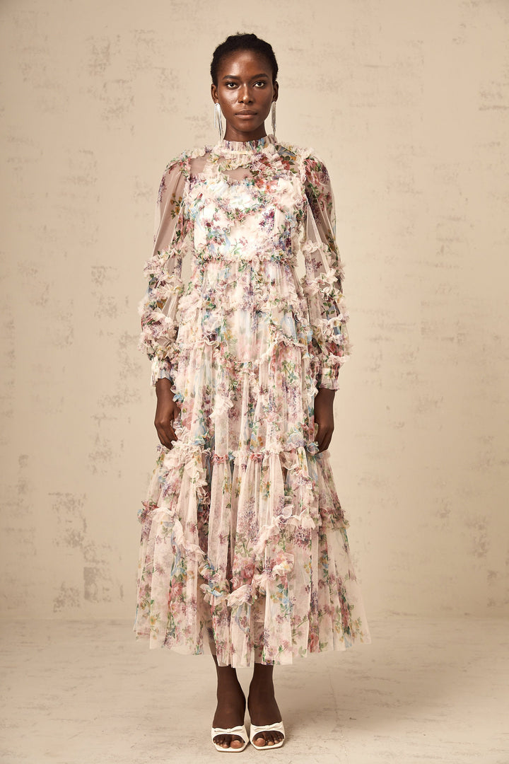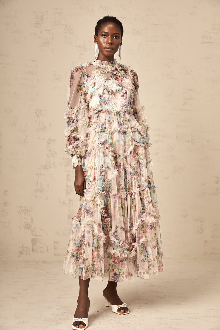 Candice floral ruffled tulle midi dress