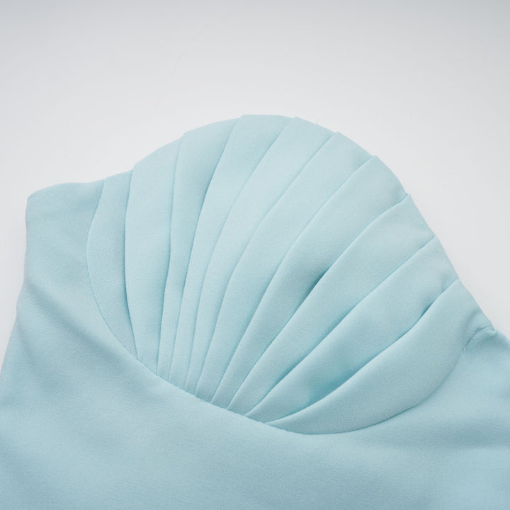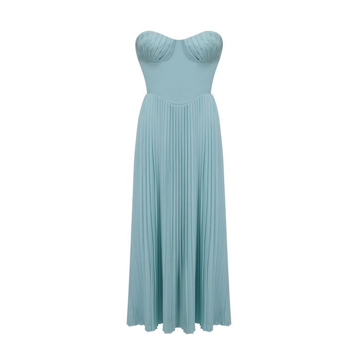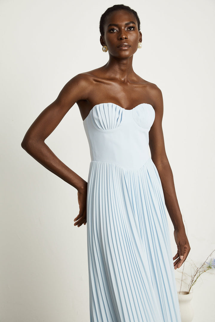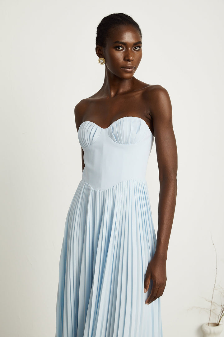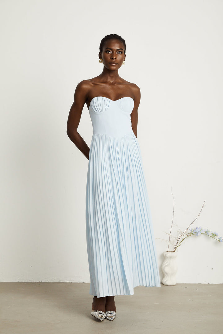 Carlotta blue pleated corset maxi dress