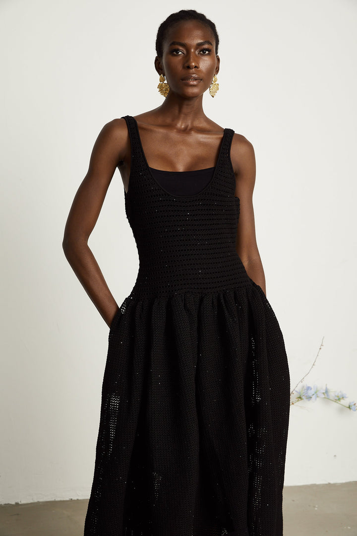 Clotilde black crochet-knit midi dress (US Only)
