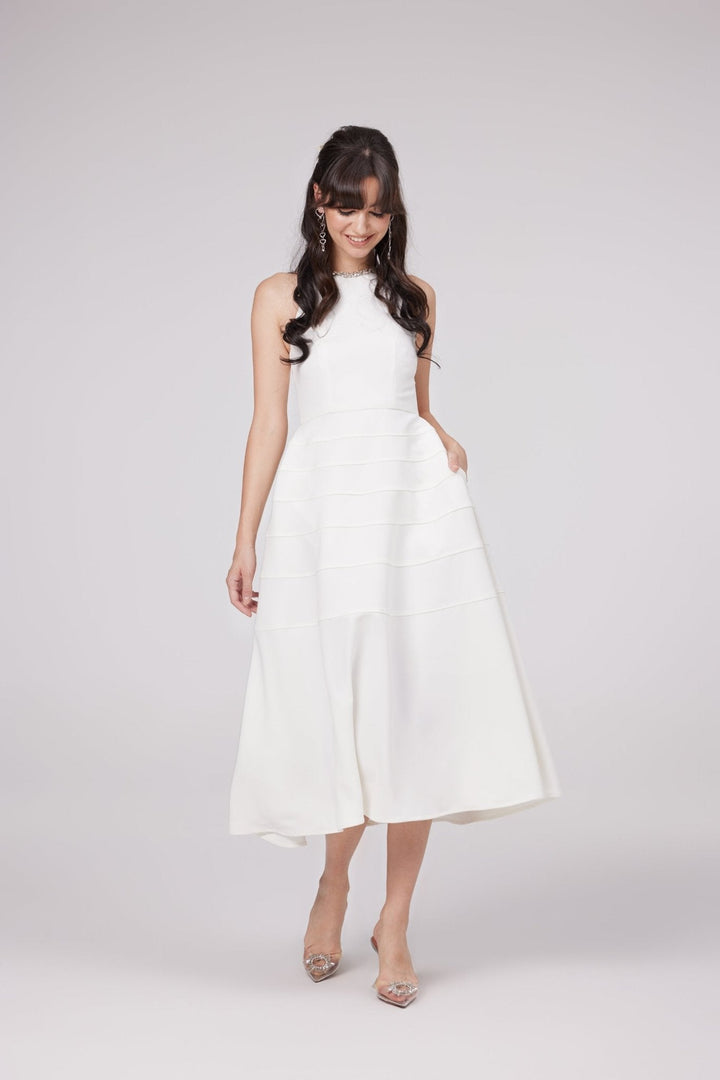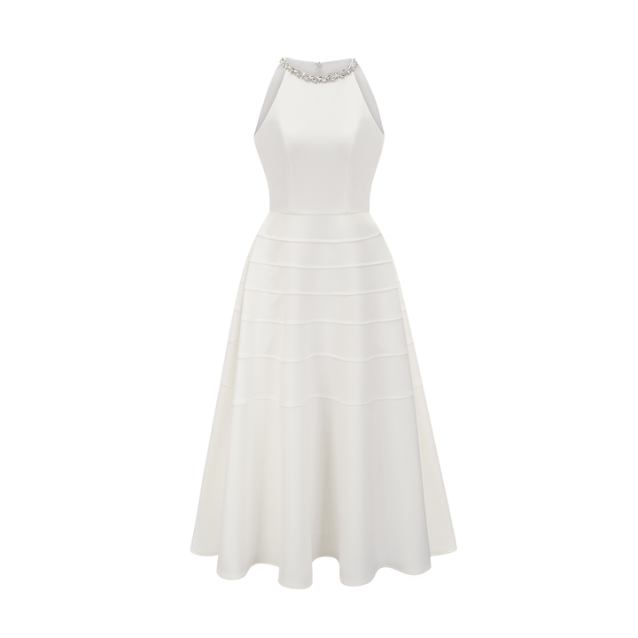 Inès white crystal-embellished midi dress