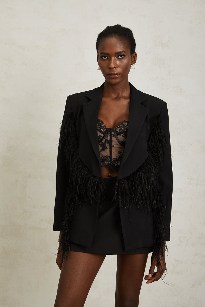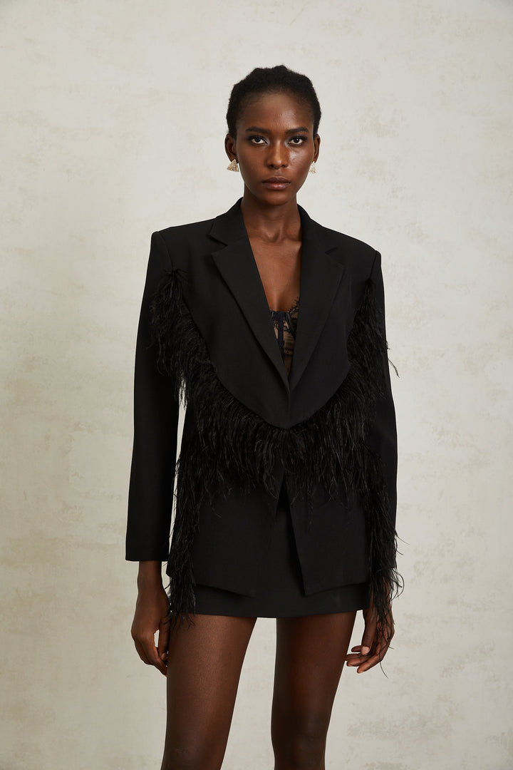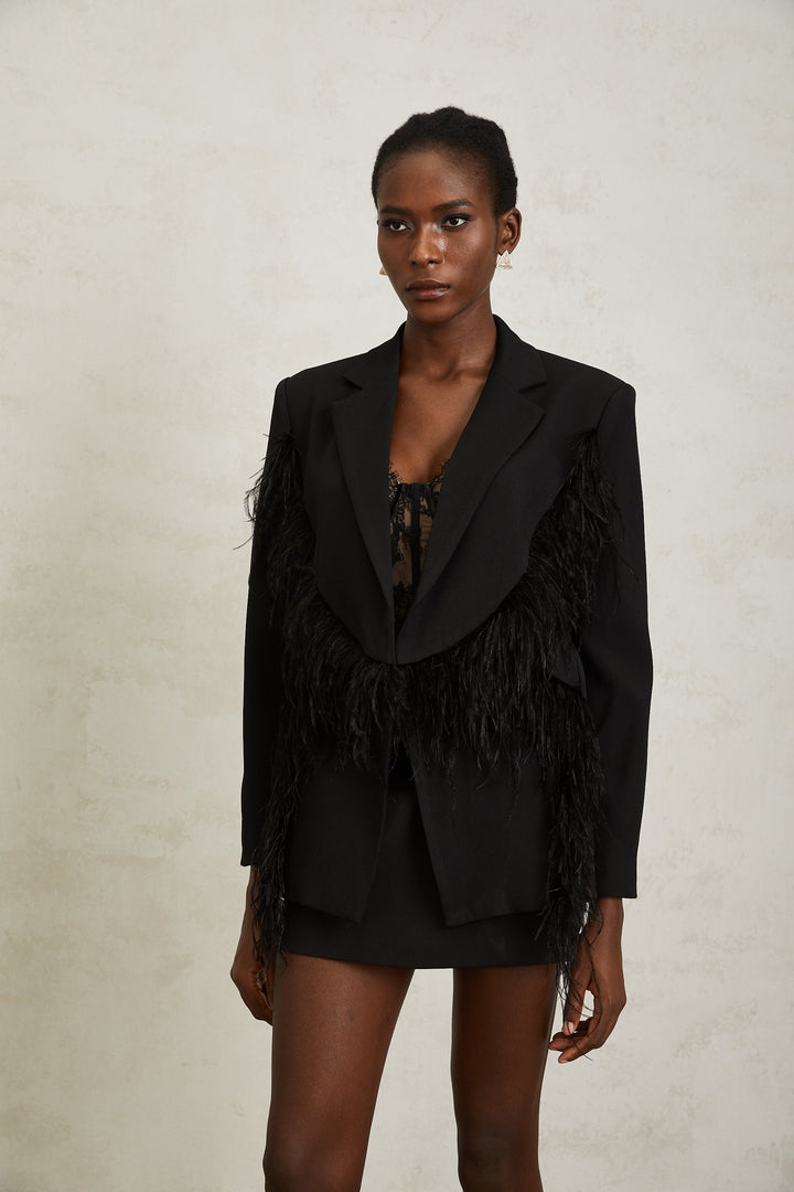 Jimena Black Feather Panel Blazer