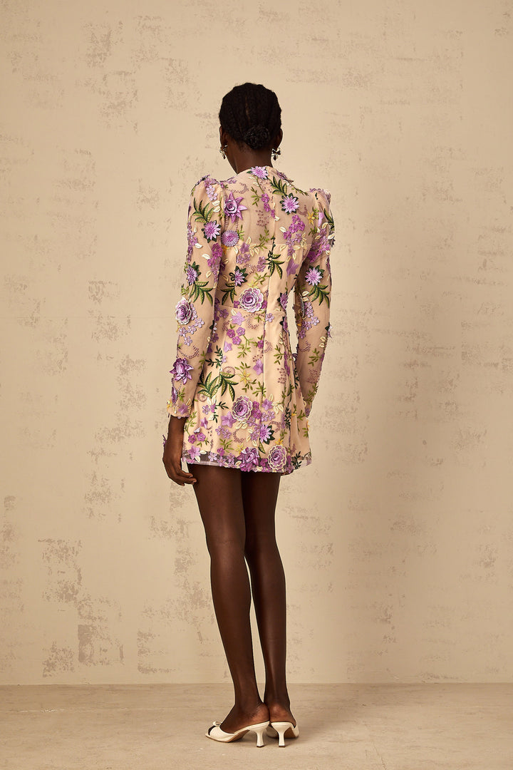 Jolien Purple Floral Appliqué Embroidered Tulle Mini Dress