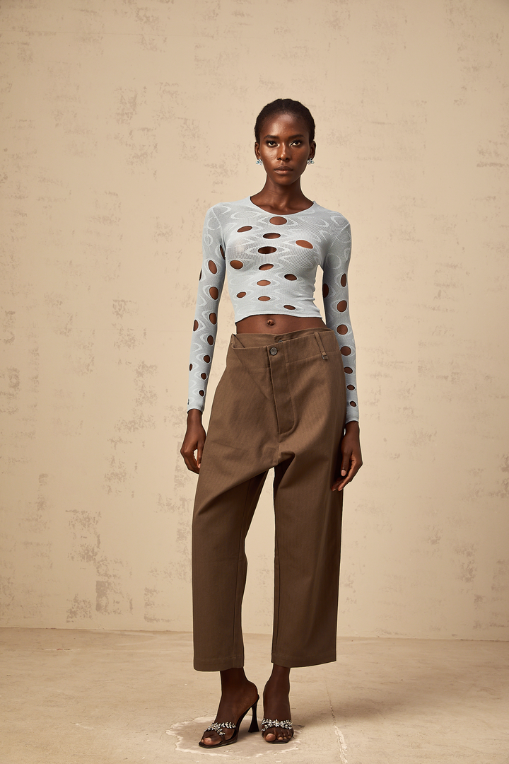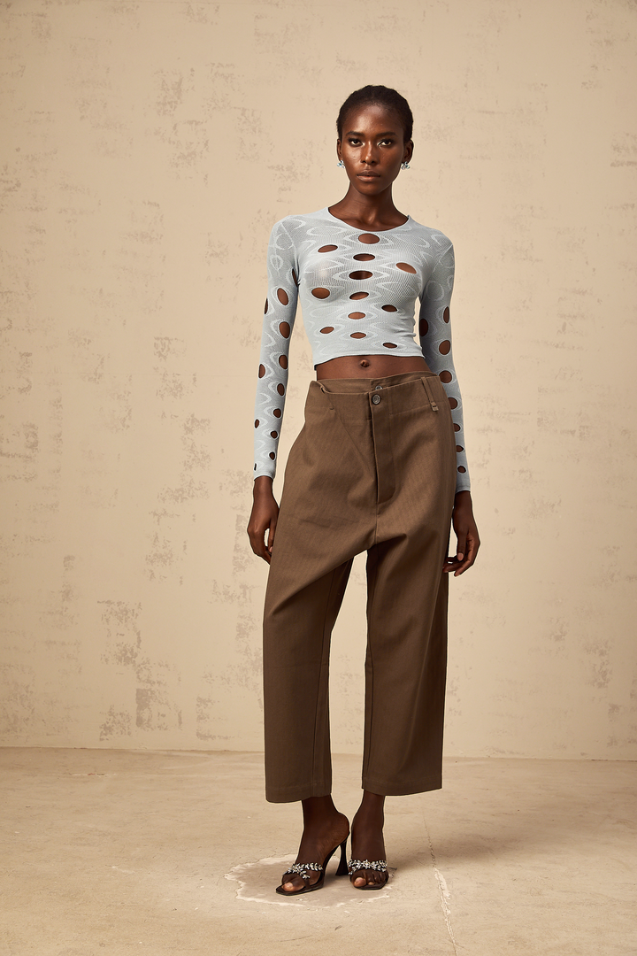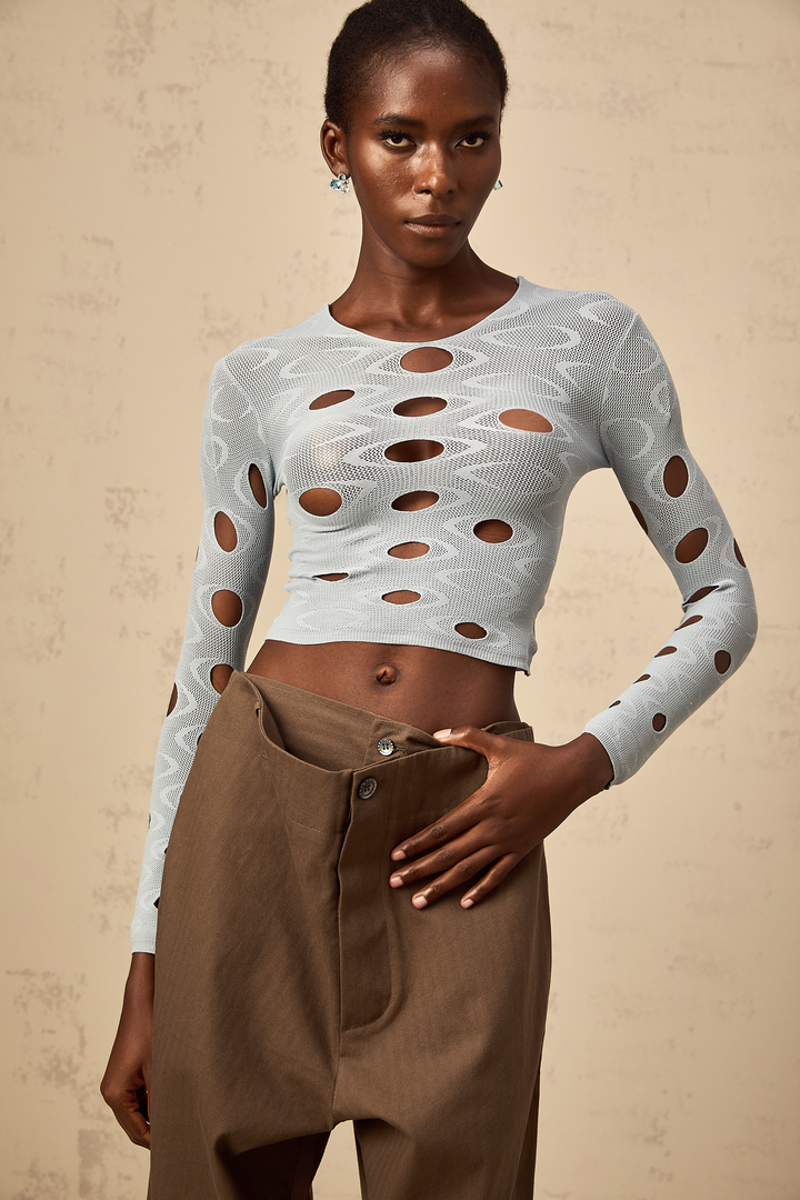 Josette light-blue stretchy cut-out cropped top (US Only)