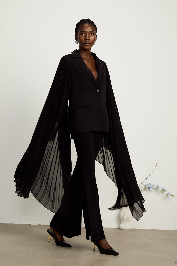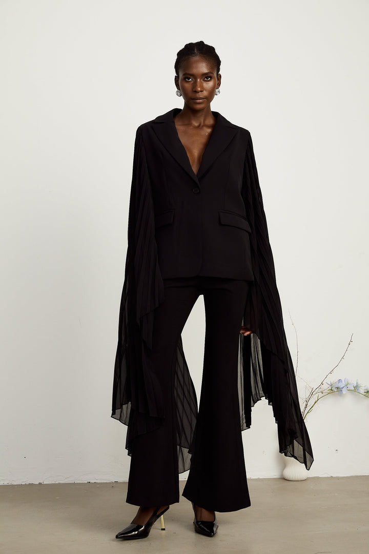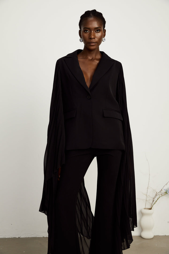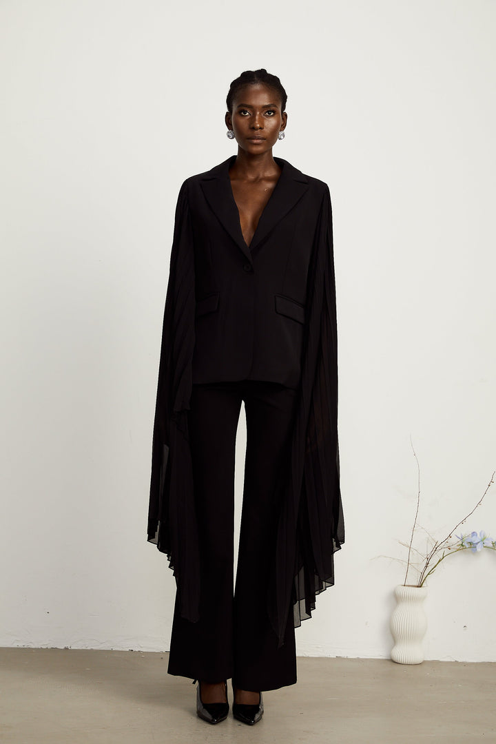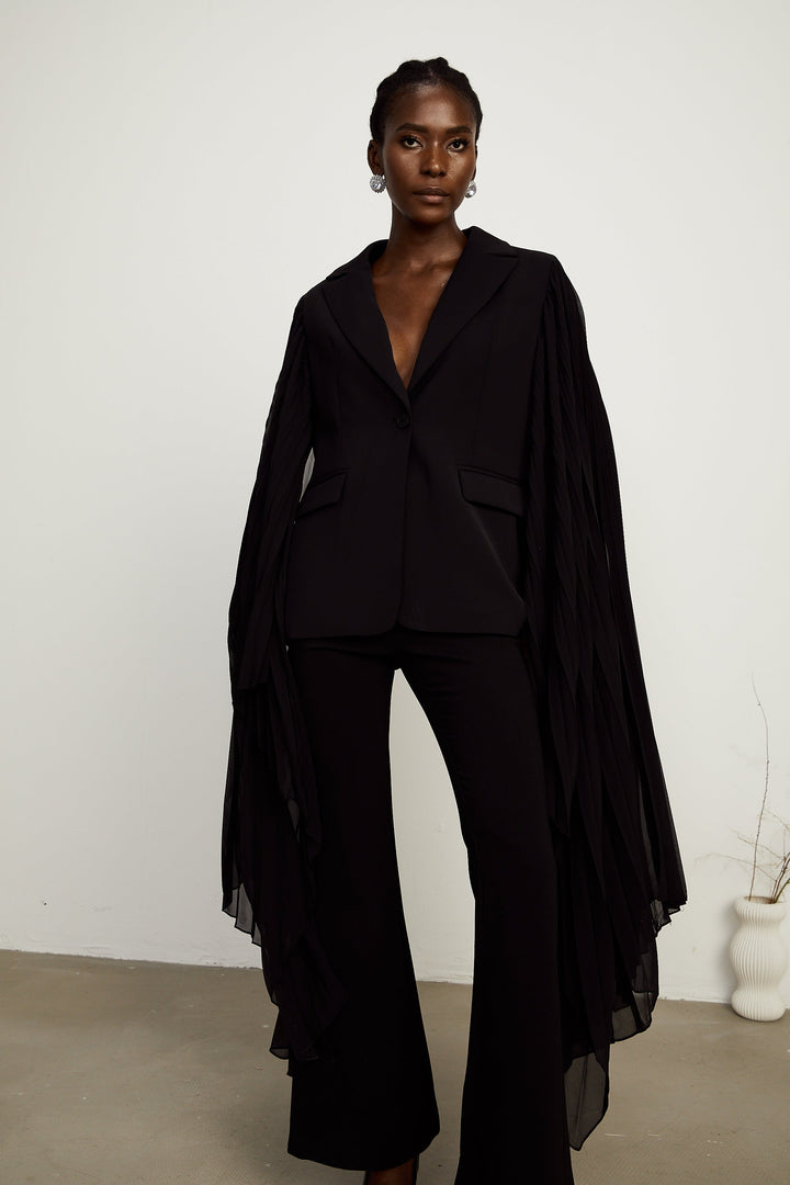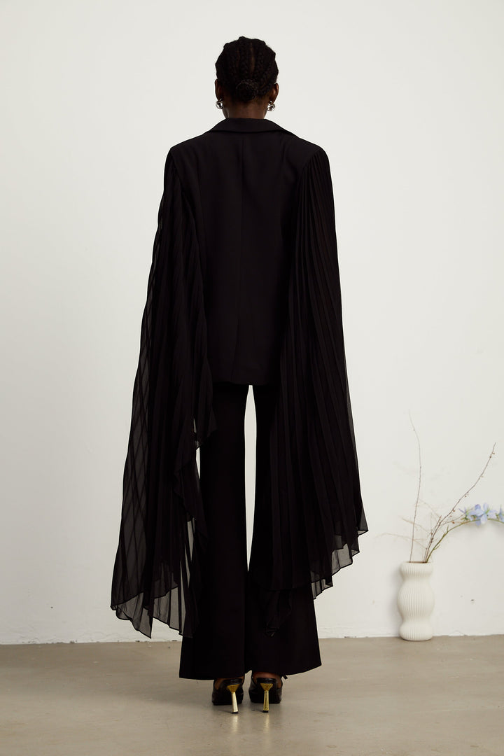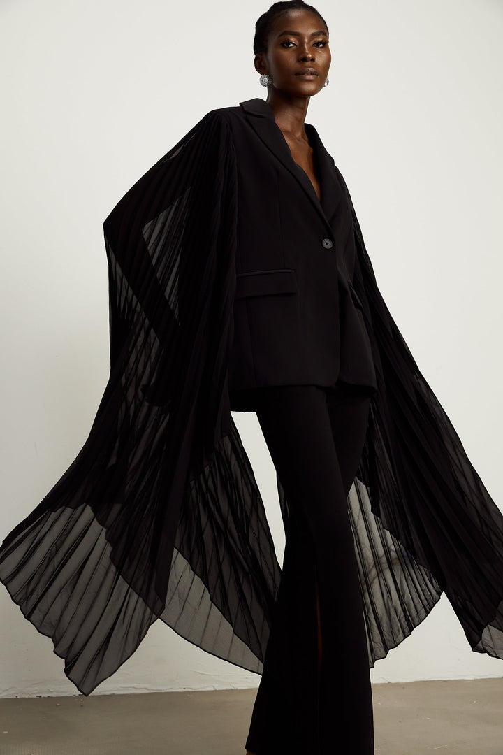 Justine black tulle-panel flared-sleeve blazer (US Only)