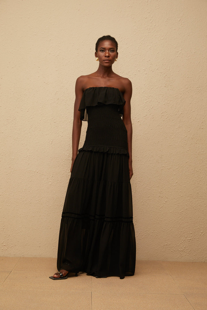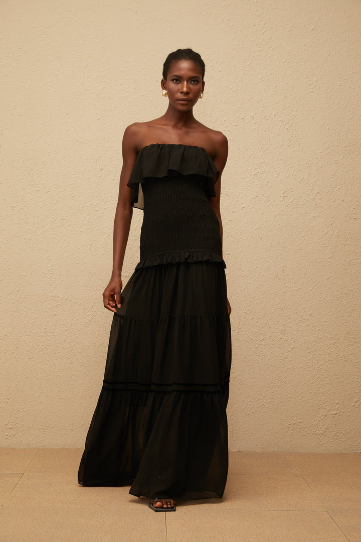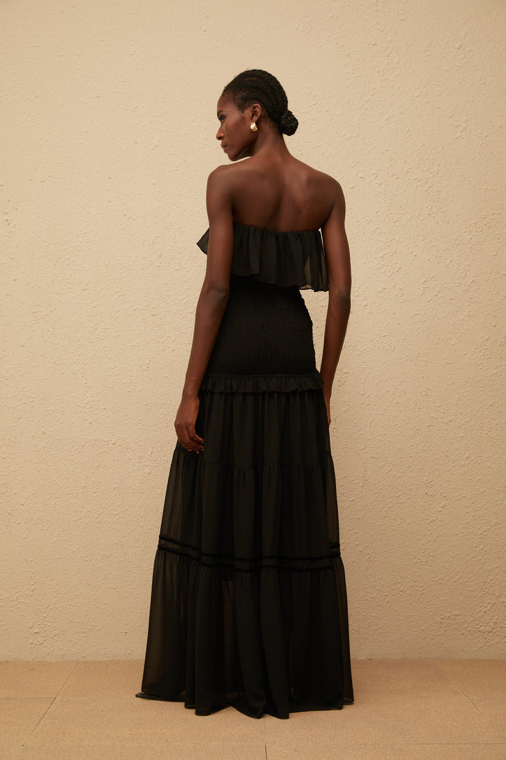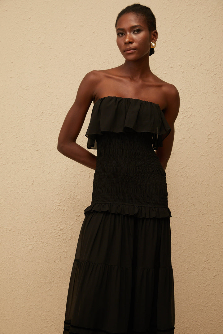 Karoliina Black Off-Shoulder Smocked Panel Maxi Dress