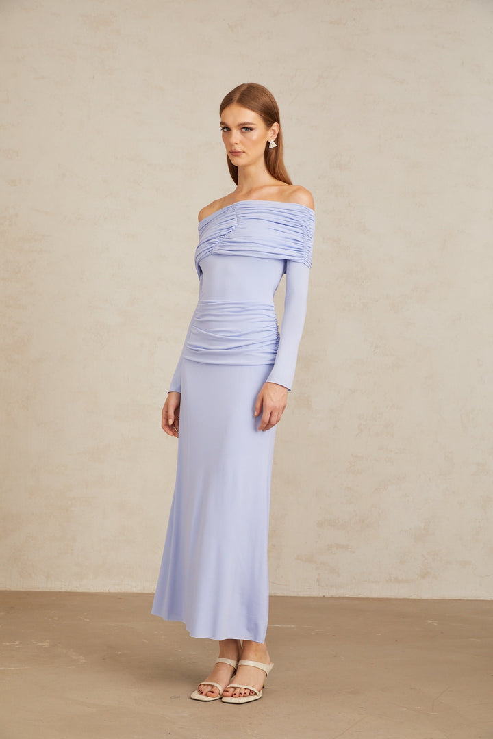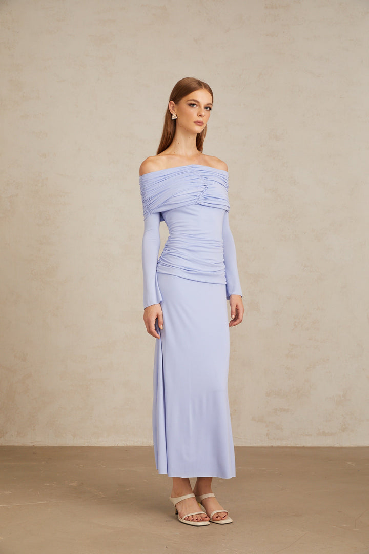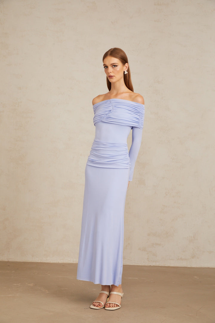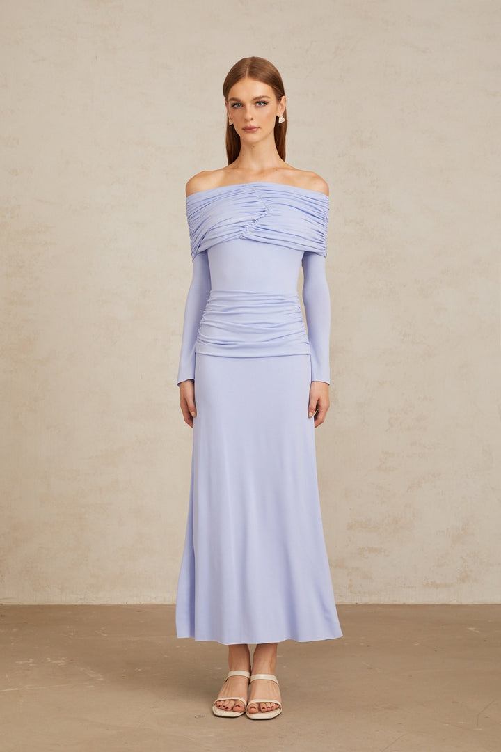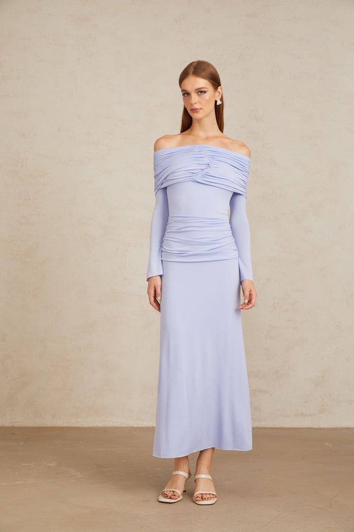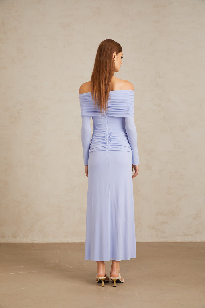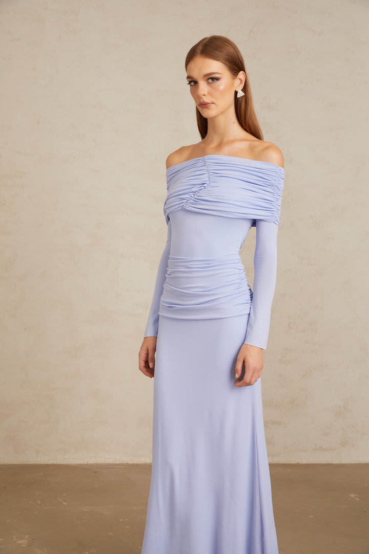 Katia Light Blue Off-Shoulder Ruched Maxi Dress