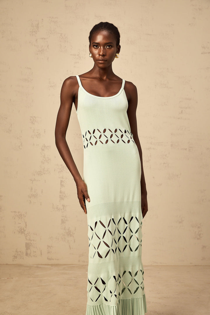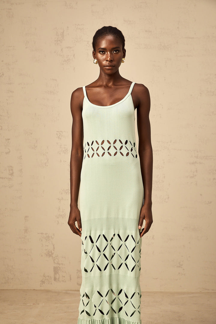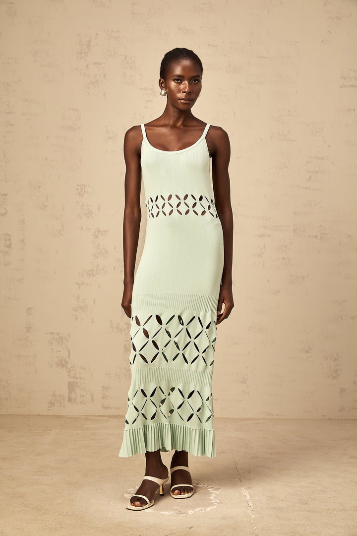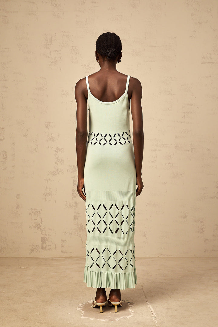 Léonore green cut-out knitted maxi dress
