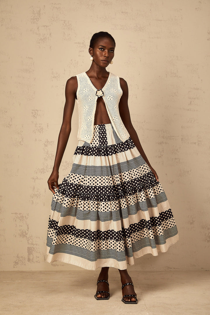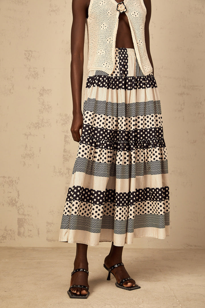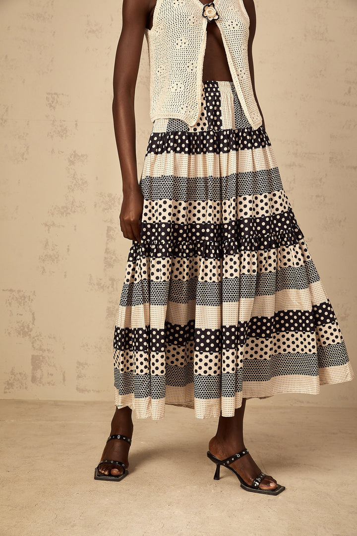 Joséphine Color Block Shirred Polka Dot Skirt