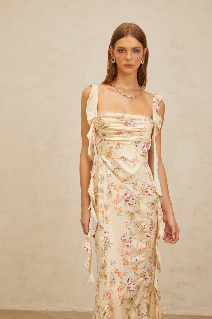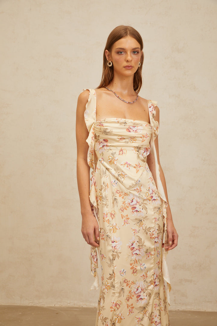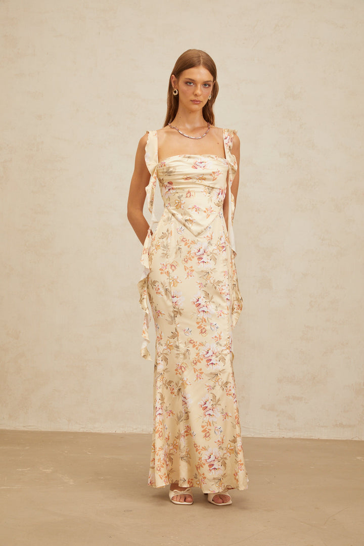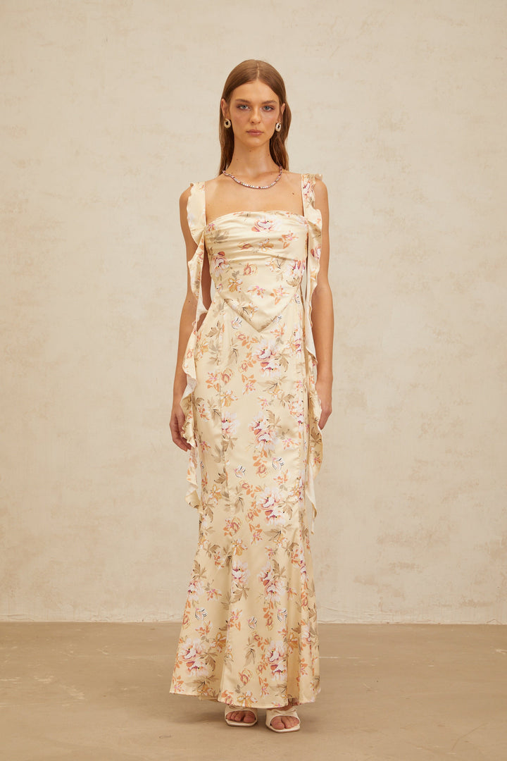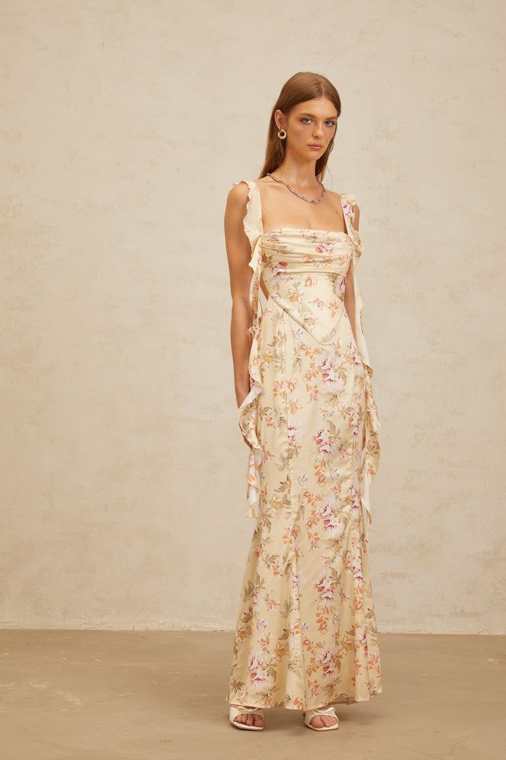 Alizée Yellow Floral Print Mermaid Maxi Dress