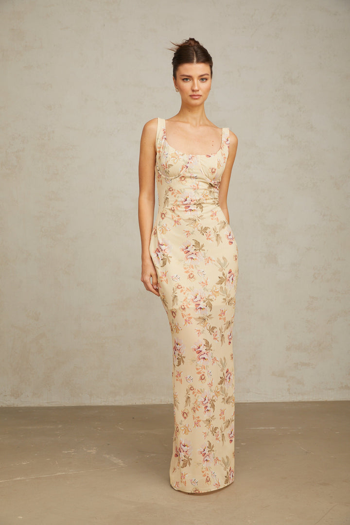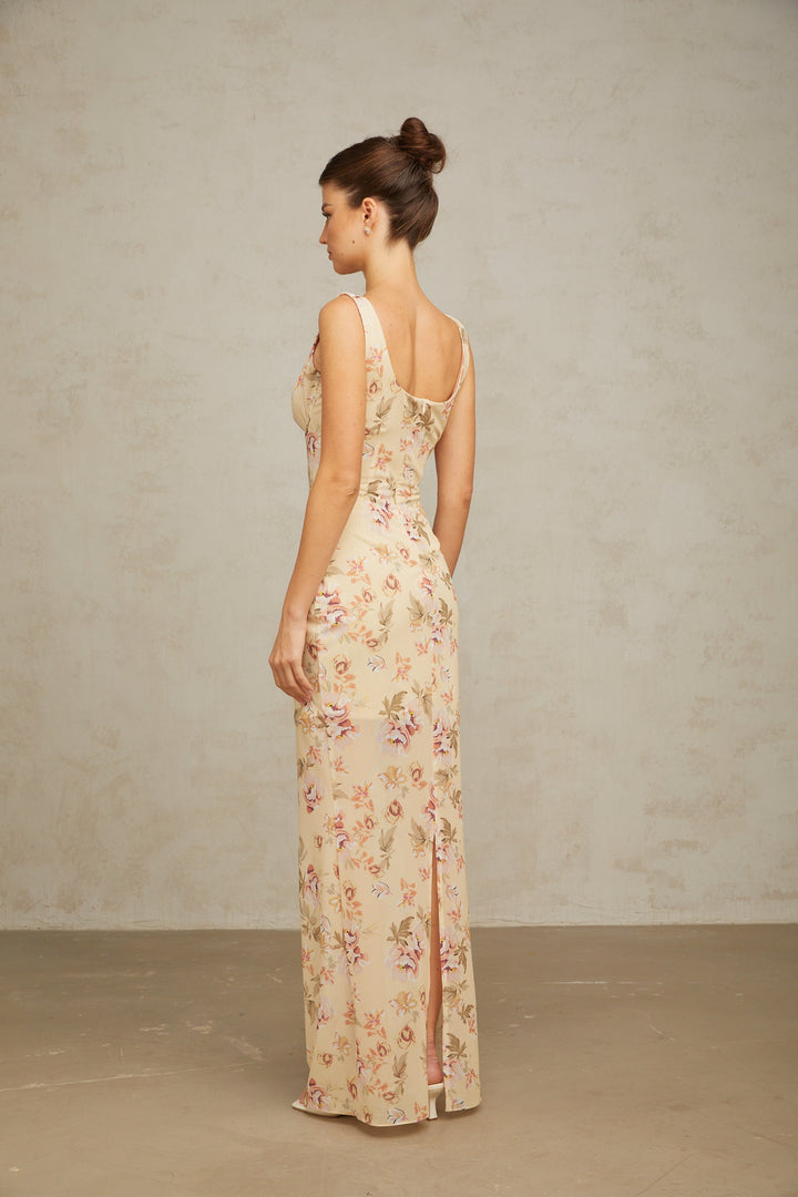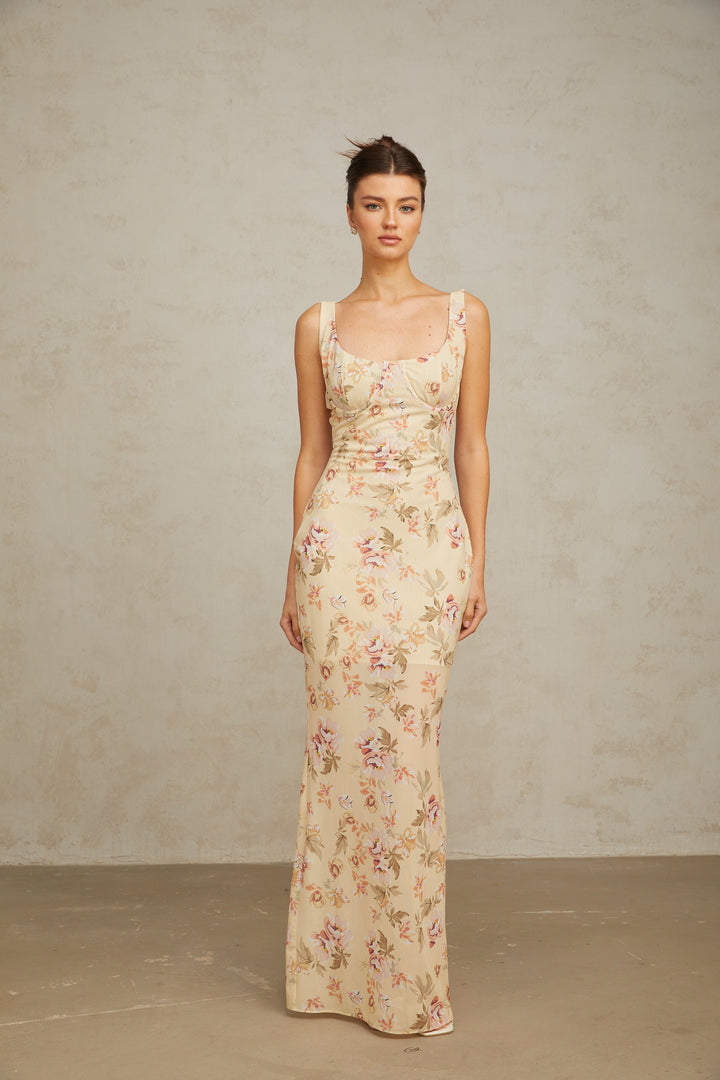 Alizée yellow floral-print sleeveless maxi dress