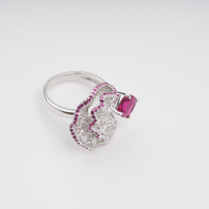 Daphné Rose Pink Moonlit Wave Adjustable Sterling Silver Ring