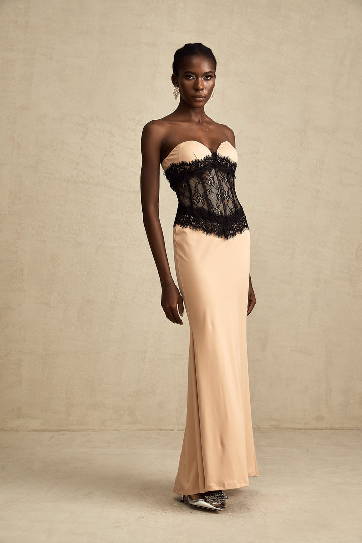 Delphine lace-panel off-shoulder corset maxi dress