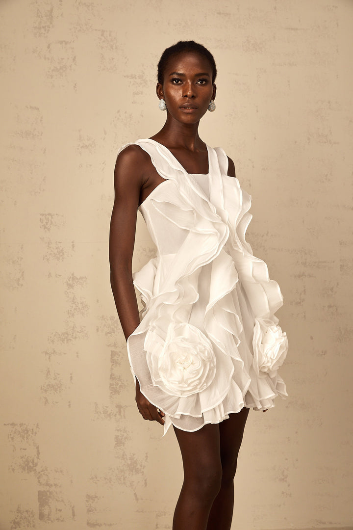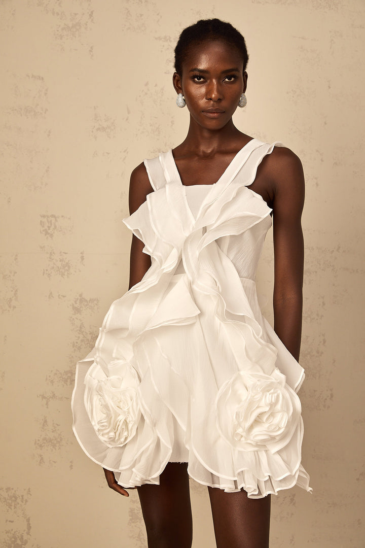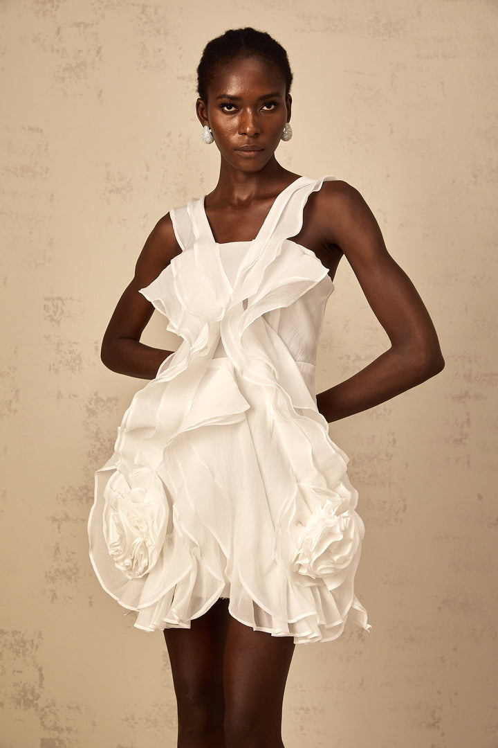 Eline white ruffled tulle mini dress