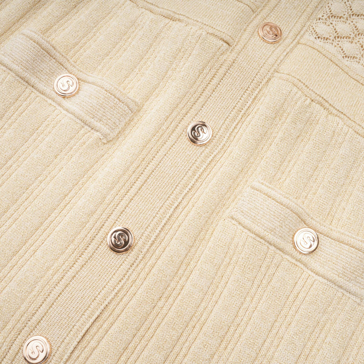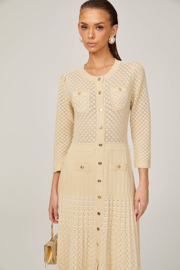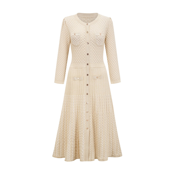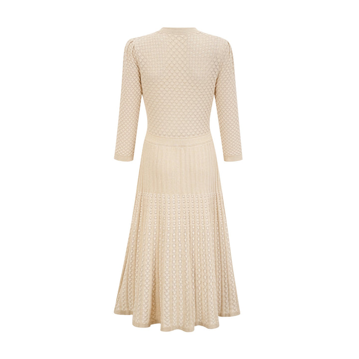 Élodie knitted long-sleeve midi dress in Neutrals