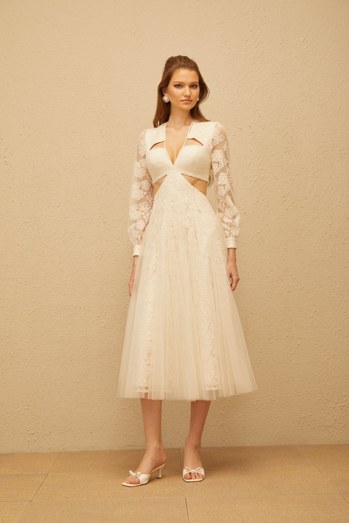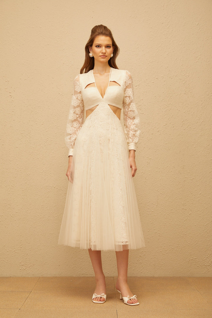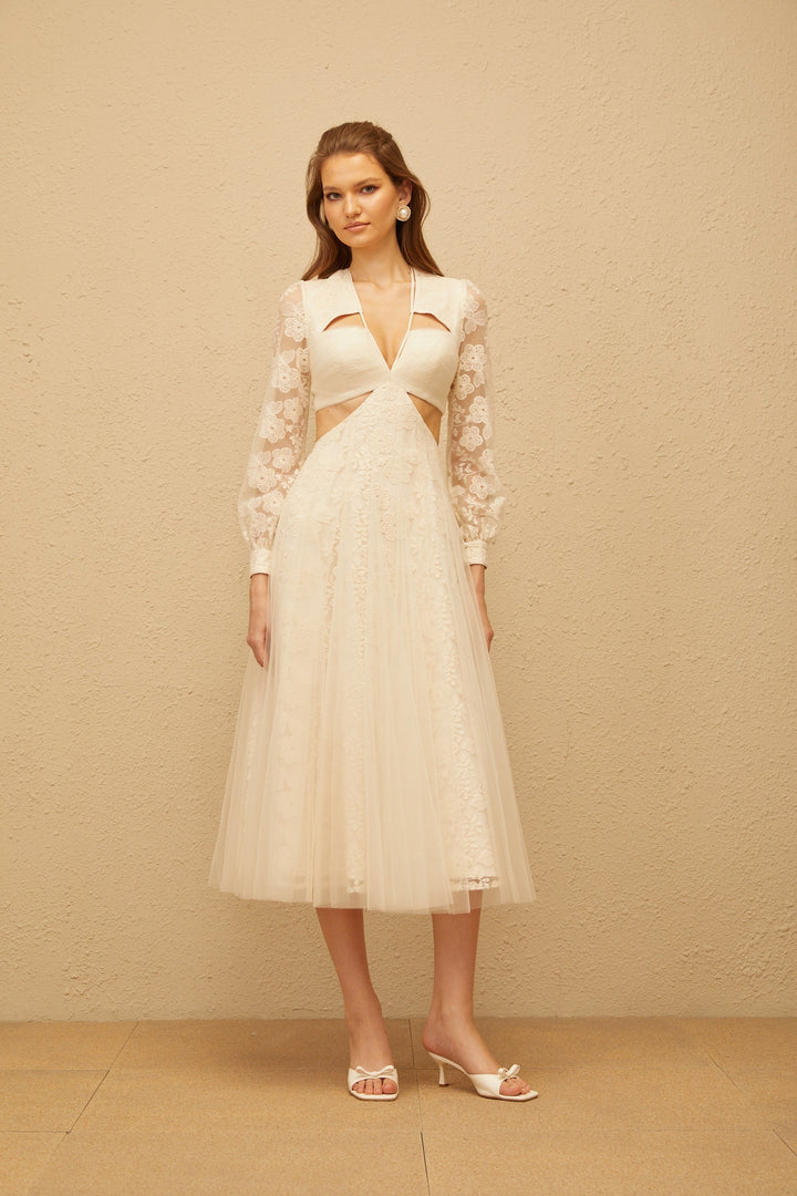 Esmé White Floral Lace Tulle Midi Dress