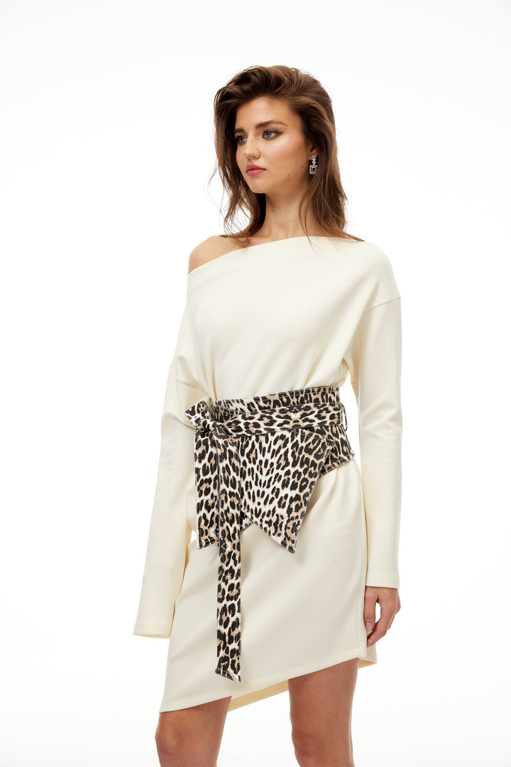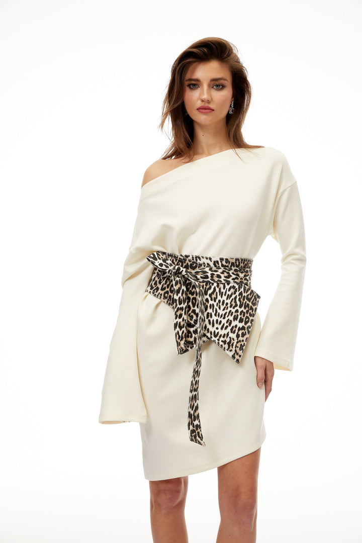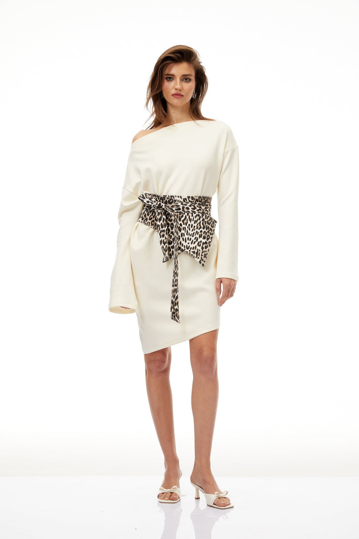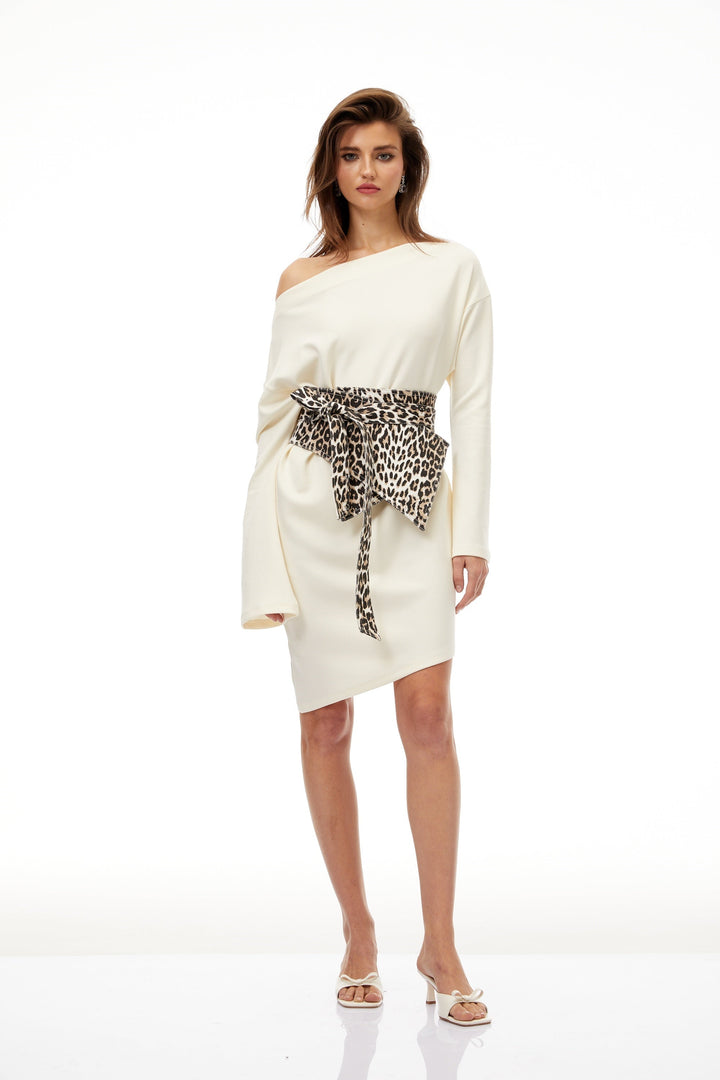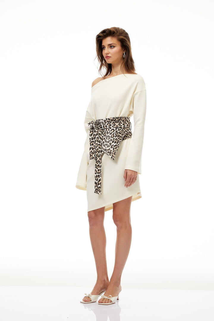 Gerta White Leopard Waistband Asymmetrical Mini Dress