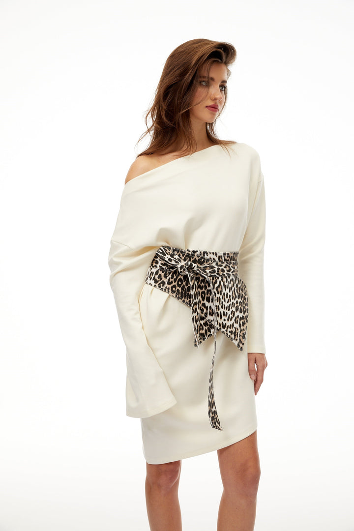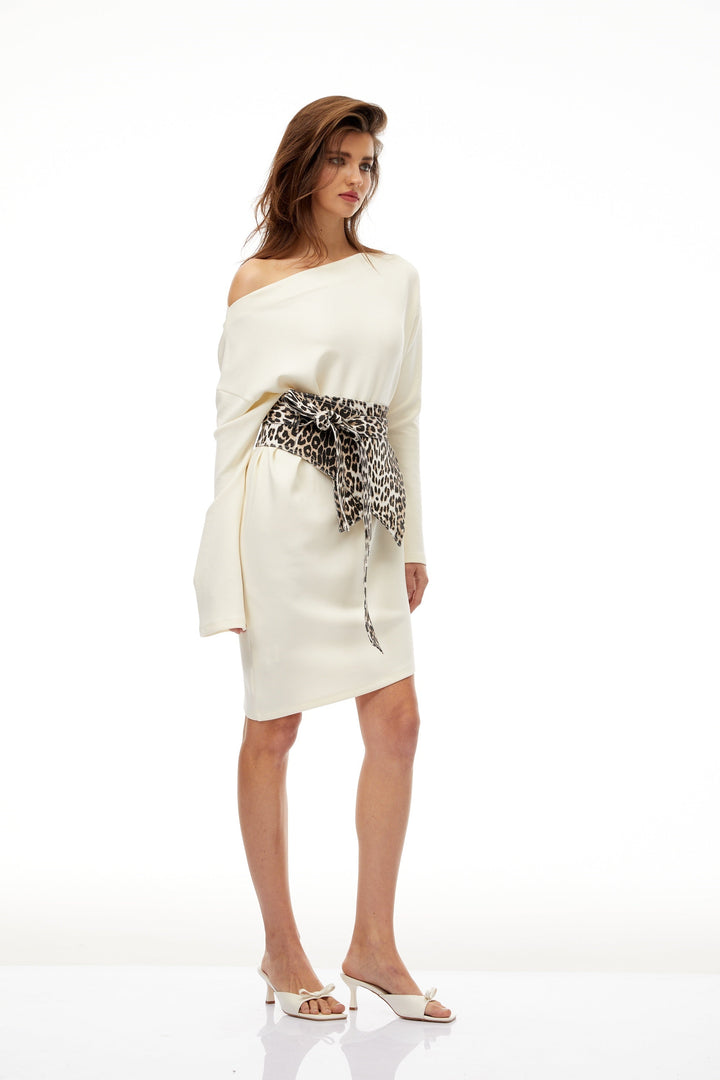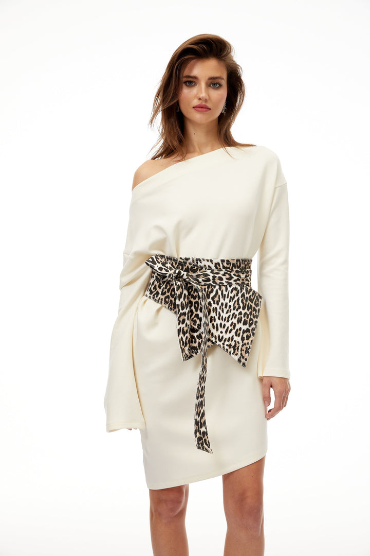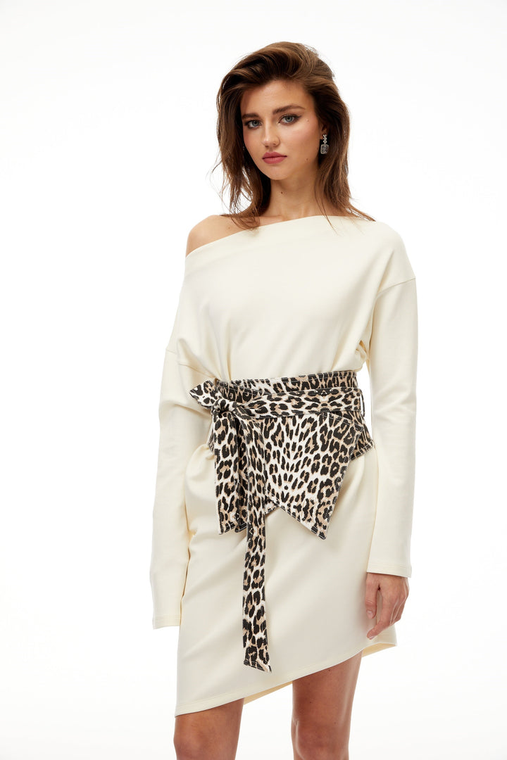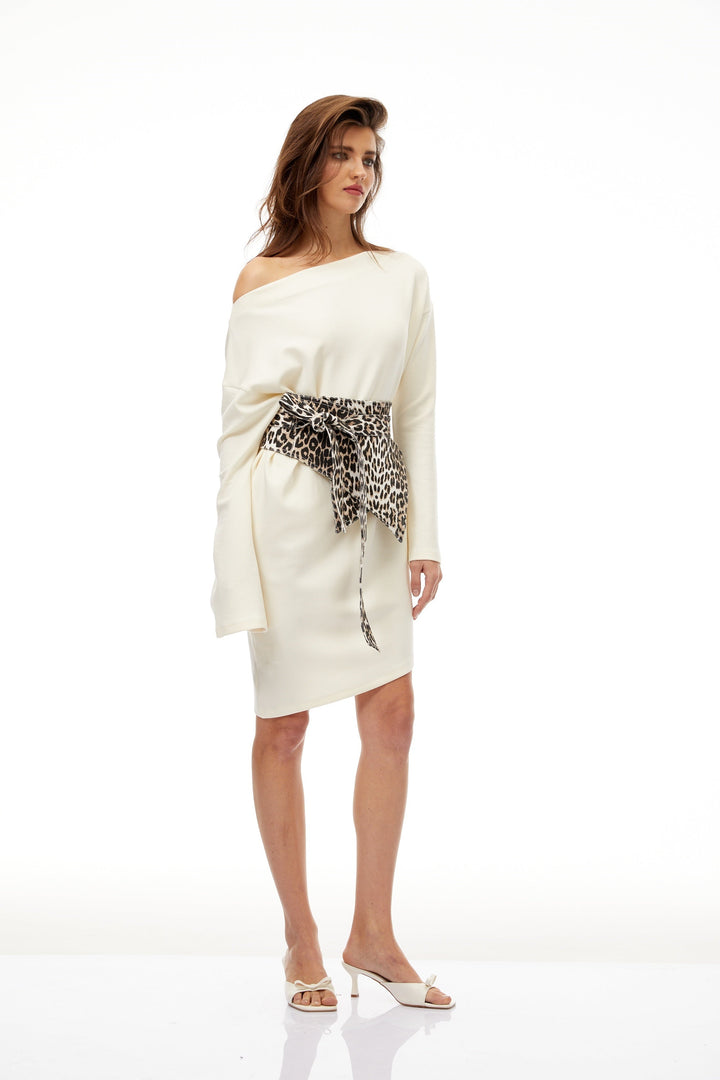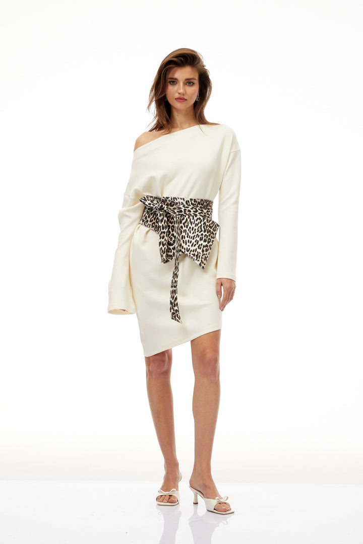 Gerta White Leopard Waistband Asymmetrical Mini Dress