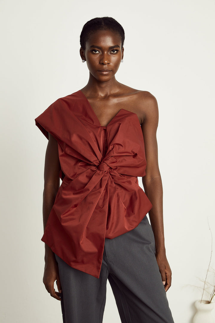 Hermine red bow-detail asymmetrical top