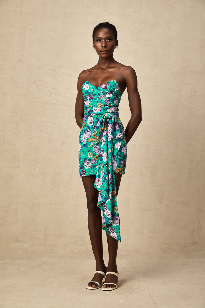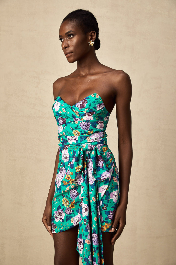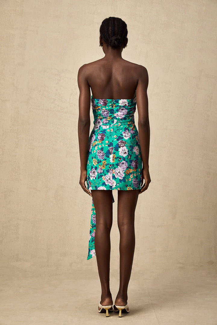 Abby green floral ruched mini dress (US Only)