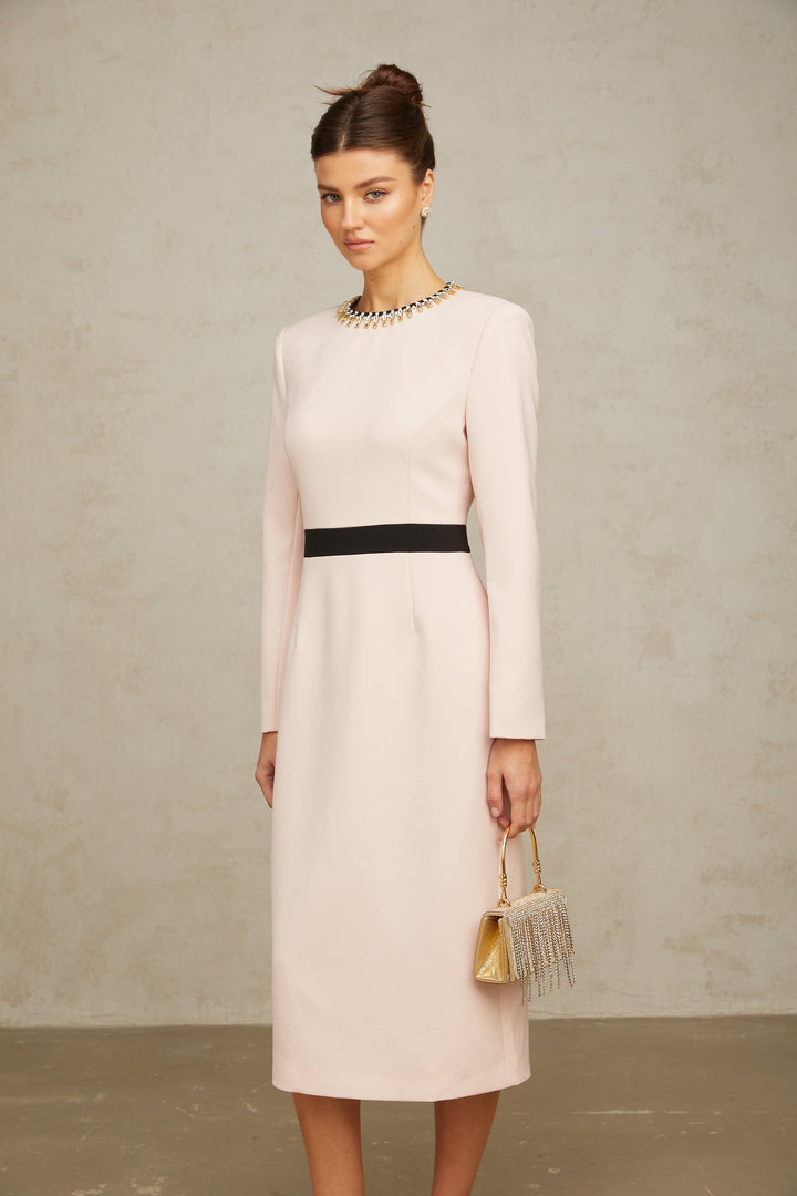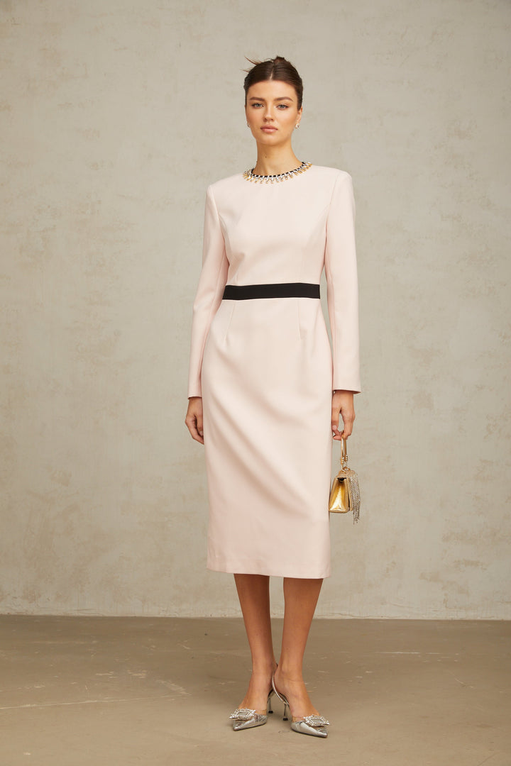 Anaïs pink crystal color-blocked midi dress (US Only)