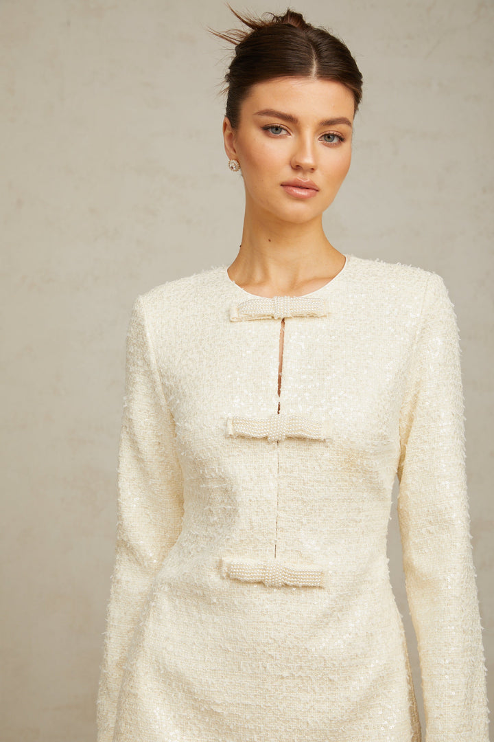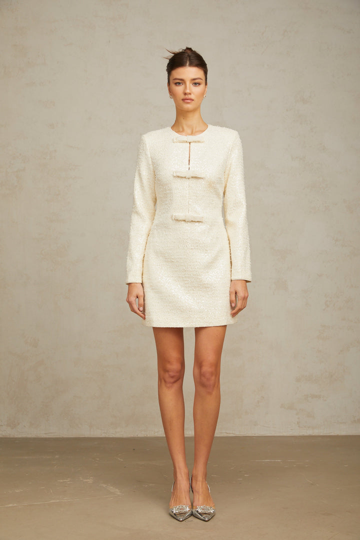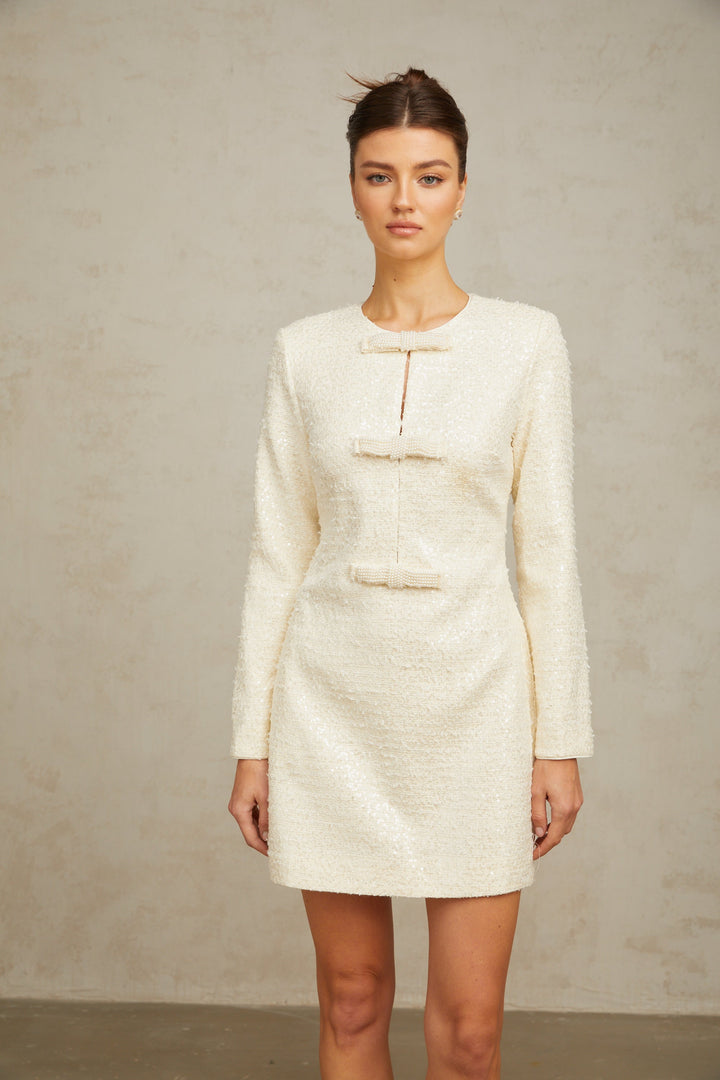 Angélique white sequined tweed mini dress