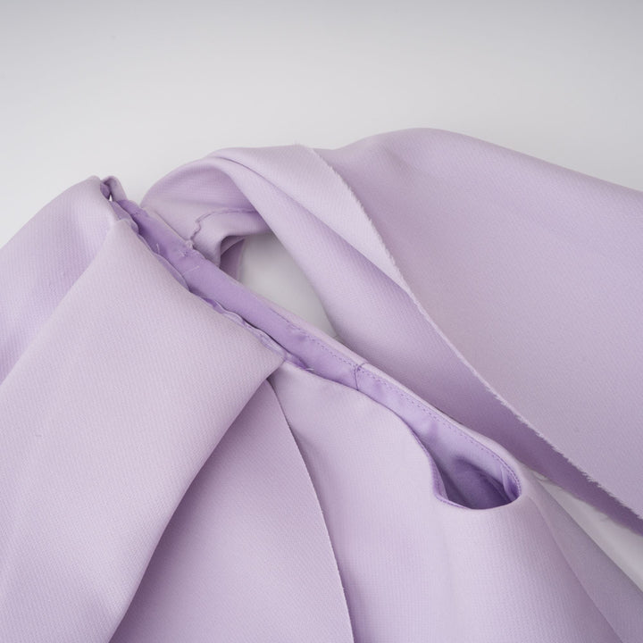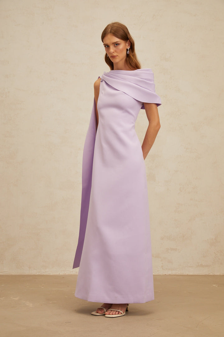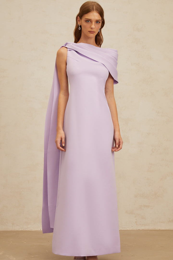 Annabelle Purple Cape-Design Ribbon Maxi Dress