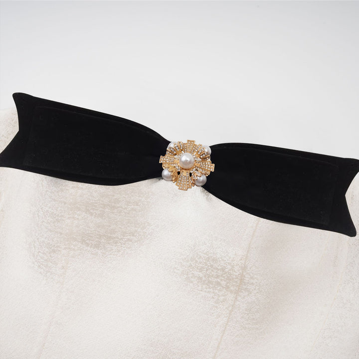 • White & Black • Sleeveless • Off the shoulder • Contrast colours • Bow detailing • Rear zip fastening • Thigh length • Composition: 76% Viscose, 24% Polyester • NOTICE: This item is a Final Sale item, offered at an extremely low discount. Therefore, we do not accept any returns, exchanges, refunds. Please make sure to confirm the size and your needs before placing the order. Thank you for your understanding!
