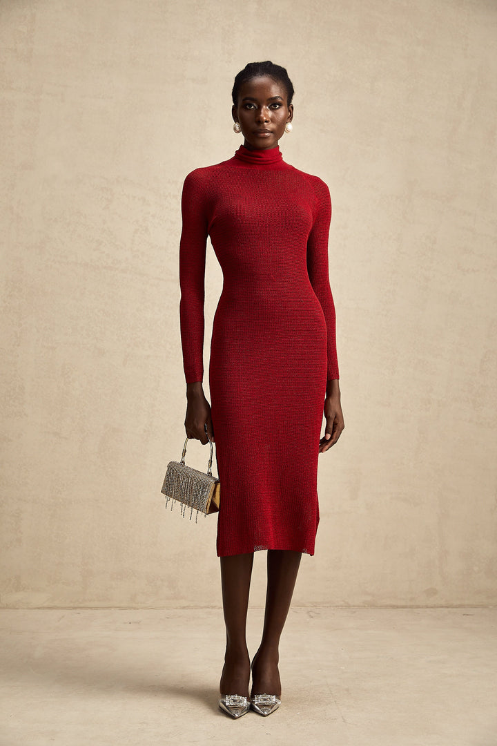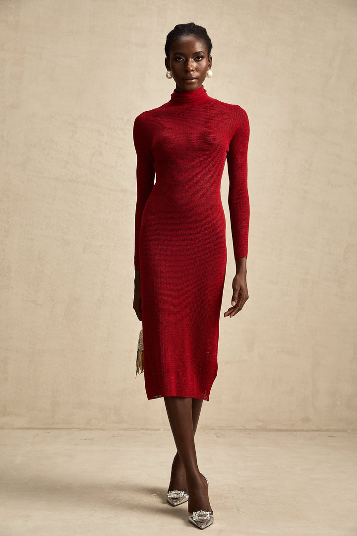 Arianee red metallic pointelle midi dress