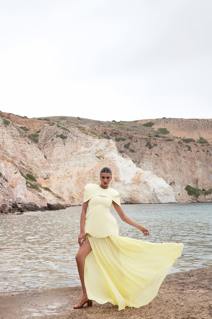 Auriane Layered Cape Sculptural Maxi Dress Set