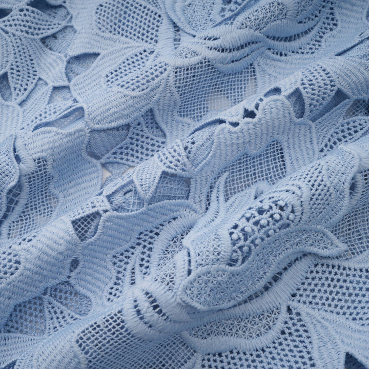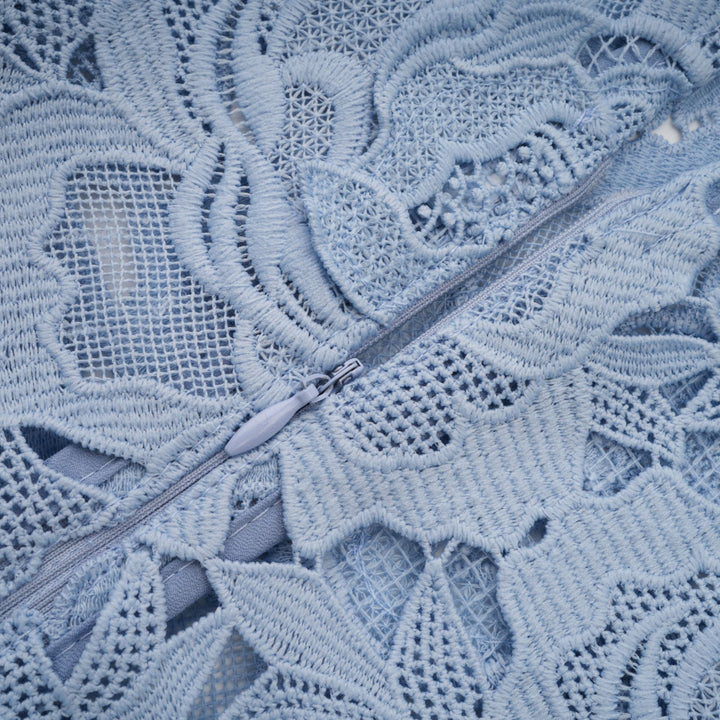 • Model is 1.75m, wearing size M • Blue • Guipure lace • Panelled lapel • Short sleeves • Floral appliqué • Scallop trim • Flared hem • Rear zip fastening • Calf length • Composition: 100% Terylene fiber • NOTICE: This item is a Final Sale item, offered at an extremely low discount. Therefore, we do not accept any returns, exchanges, refunds. Please make sure to confirm the size and your needs before placing the order. Thank you for your understanding!
